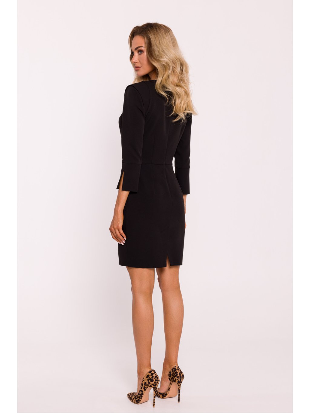 Mini šaty střižené v pase, vyrobené z vysoce kvalitní látky pro elegantní vzhled a pohodlné nošení. Rukávy v délce 7/8 mají ve spodní části jemné rozparky a ozdobnou vsadku na rameni, která dodává šatům jedinečný nádech. Šaty se vzadu zapínají na krytý zip a rozparek ve spodní části zajišťuje volnost pohybu. Model nemá podšívku, takže je lehčí a ideální pro různé příležitosti. Šaty byly navrženy a ušity v Polsku, což zaručuje nejvyšší kvalitu a smysl pro detail.