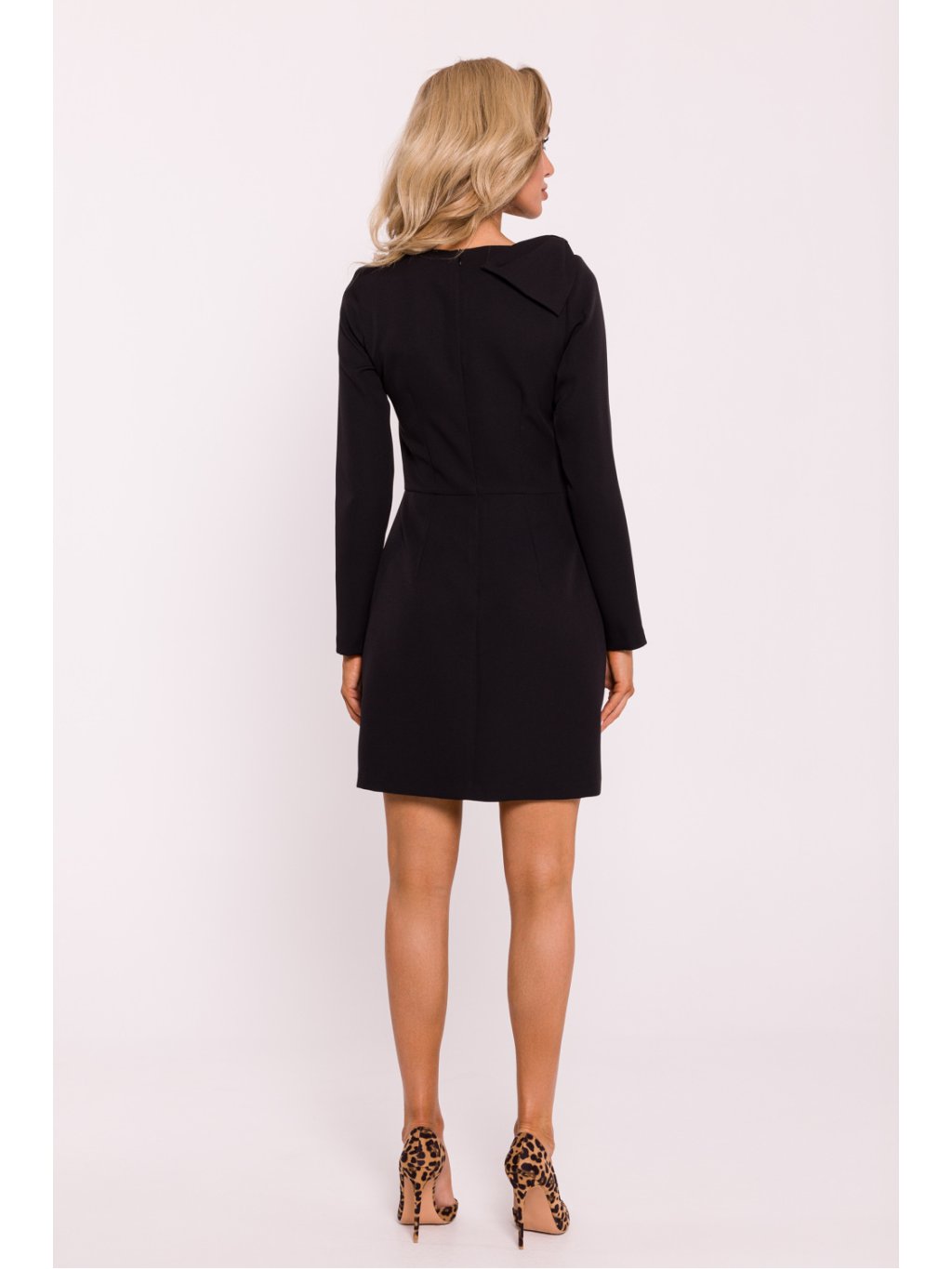 Mini šaty střižené v pase, vyrobené z elegantní látky, která dokonale sedí na postavě. Jemný rozparek vpředu dodává šatům jemnou smyslnost, zatímco dlouhé rukávy s ozdobnou mašlí na jednom rameni vnášejí do šatů stylový a ženský nádech. Šaty se vzadu zapínají na krytý zip, který působí hladce a esteticky. Model nemá podšívku, takže je lehký a ideální pro různé příležitosti. Šaty byly navrženy a ušity v Polsku a vynikají vysokou kvalitou a precizním zpracováním.