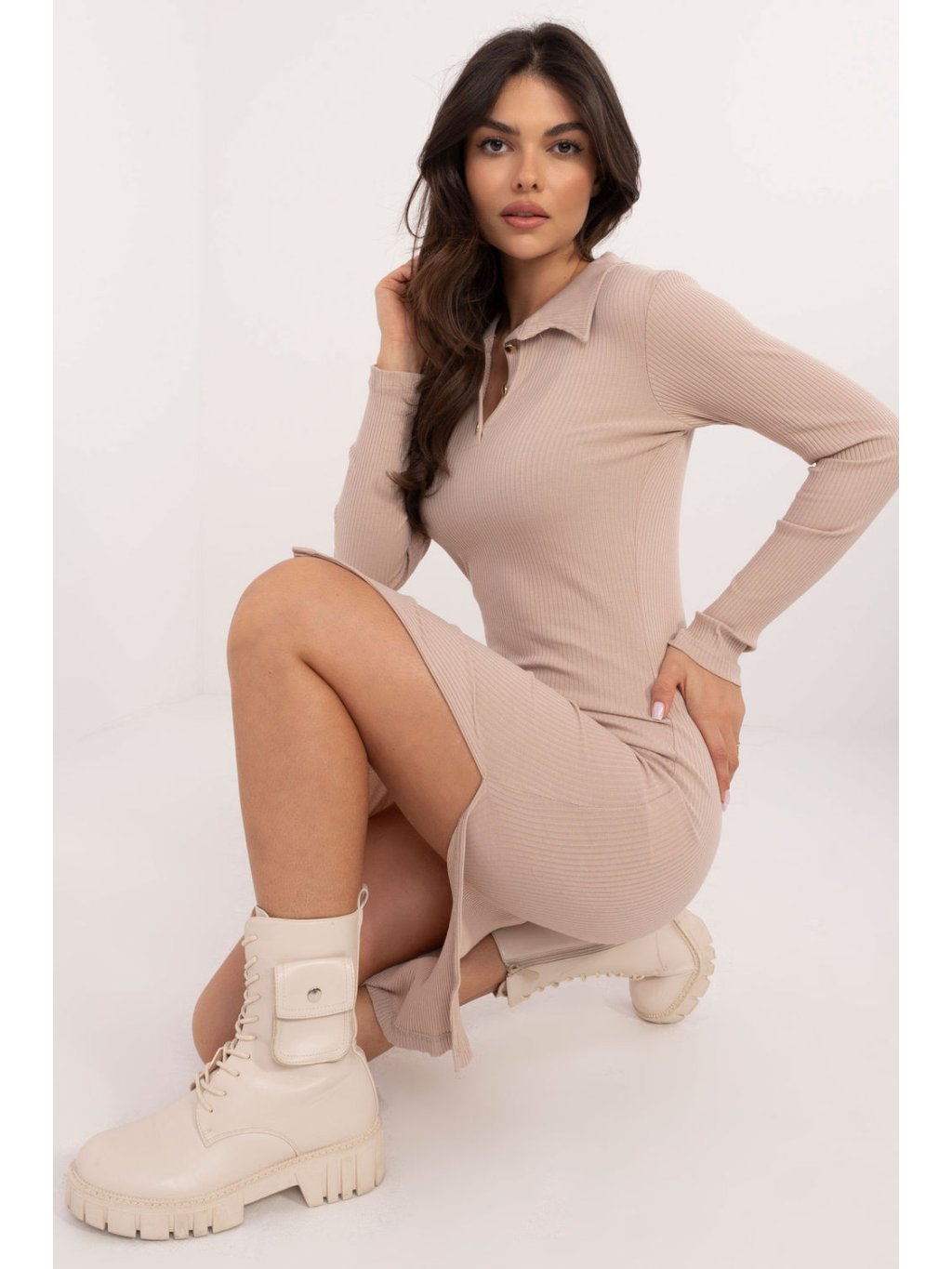 Každodenní šaty s olověným střihem, ideální na neformální výlety. Vyrobené z pohodlné směsi bavlny a elastanu, skvěle se přizpůsobují postavě, zdůrazňujíce ženské tvary. Šaty mají délku před koleno, dlouhý rukáv a elegantní límeček, co jim dodává stylový a sofistikovaný charakter. Doplňkové malé zapínání na tři knoflíky přidává jemnost a funkčnost, a hladký, pruhovaný materiál dělá šaty pohodlné a módní. Ideální na každodenní nošení, hodí se do mnoha stylizací!