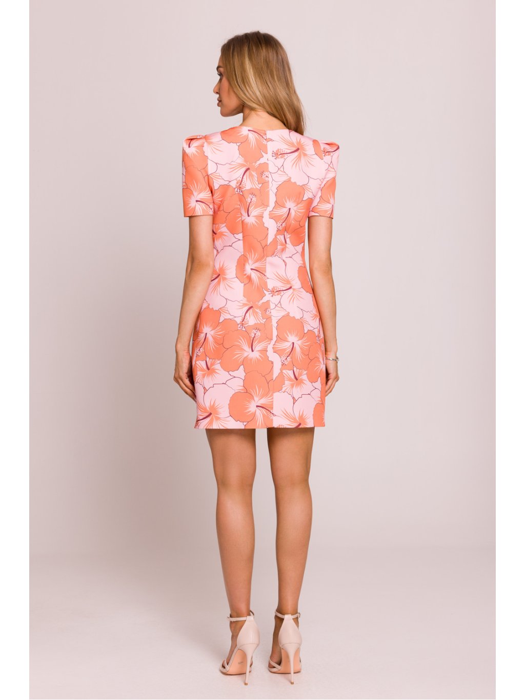 Elegantní a ženské mini šaty vyrobené z vysoce kvalitní látky s květinovým potiskem. Model zdůrazňuje pas díky jemným stehům a krátké rukávy s polštářky jí dodávají výjimečný charakter. Šaty se zapínají vzadu na skrytý zip, co zajišťuje pohodlné nošení a estetické dokončení. Chybějící podšívka zajišťuje, že jsou lehké a ideální na teplé dny. Celý kus byl navržen a ušit v Polsku s důrazem na každý detail.