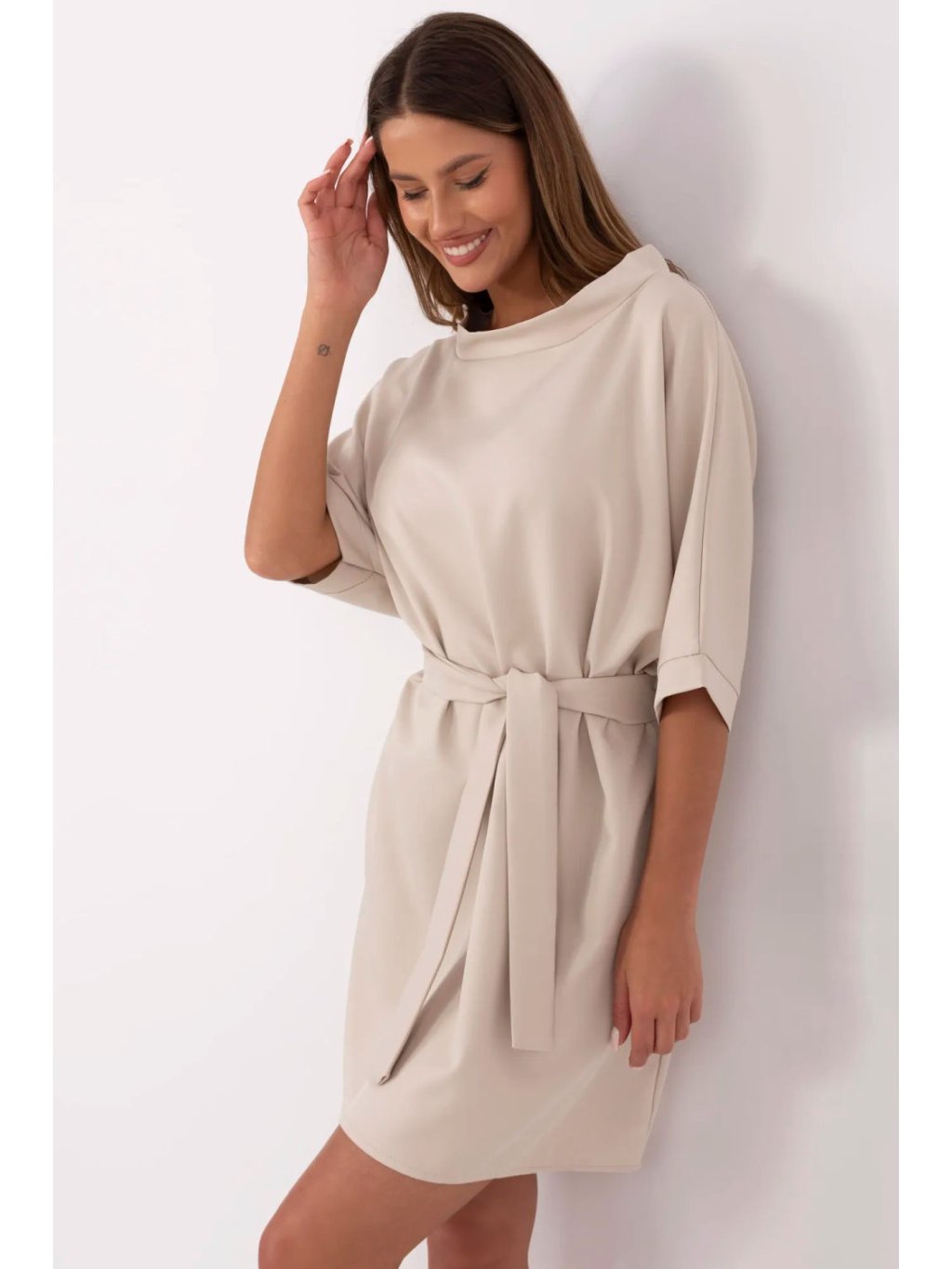 Elegantní společenské šaty jsou ideální volbou jak do práce, tak na speciální příležitosti. Vyrobeny z vysokokvalitní směsi polyesteru a elastanu, zajišťují pohodlí a skvělé přizpůsobení postavě. Klasický kulatý výstřih a rukávy délky 3/4 dodávají šatům nadčasový charakter, činí je universálním prvkem šatníku. Délka mini decentně zdůrazňuje nohy a přiložený pásek k zavázání podtrhuje pas, dodávajíce outfitu ženský výraz. Hladký vzor dělá šaty snadné na stylování, skvěle ladí jak s elegantními podpatky, tak s více ležérními doplňky. Je to skvělý návrh pro ženy, které ocení eleganci, pohodlí a klasickou eleganci.