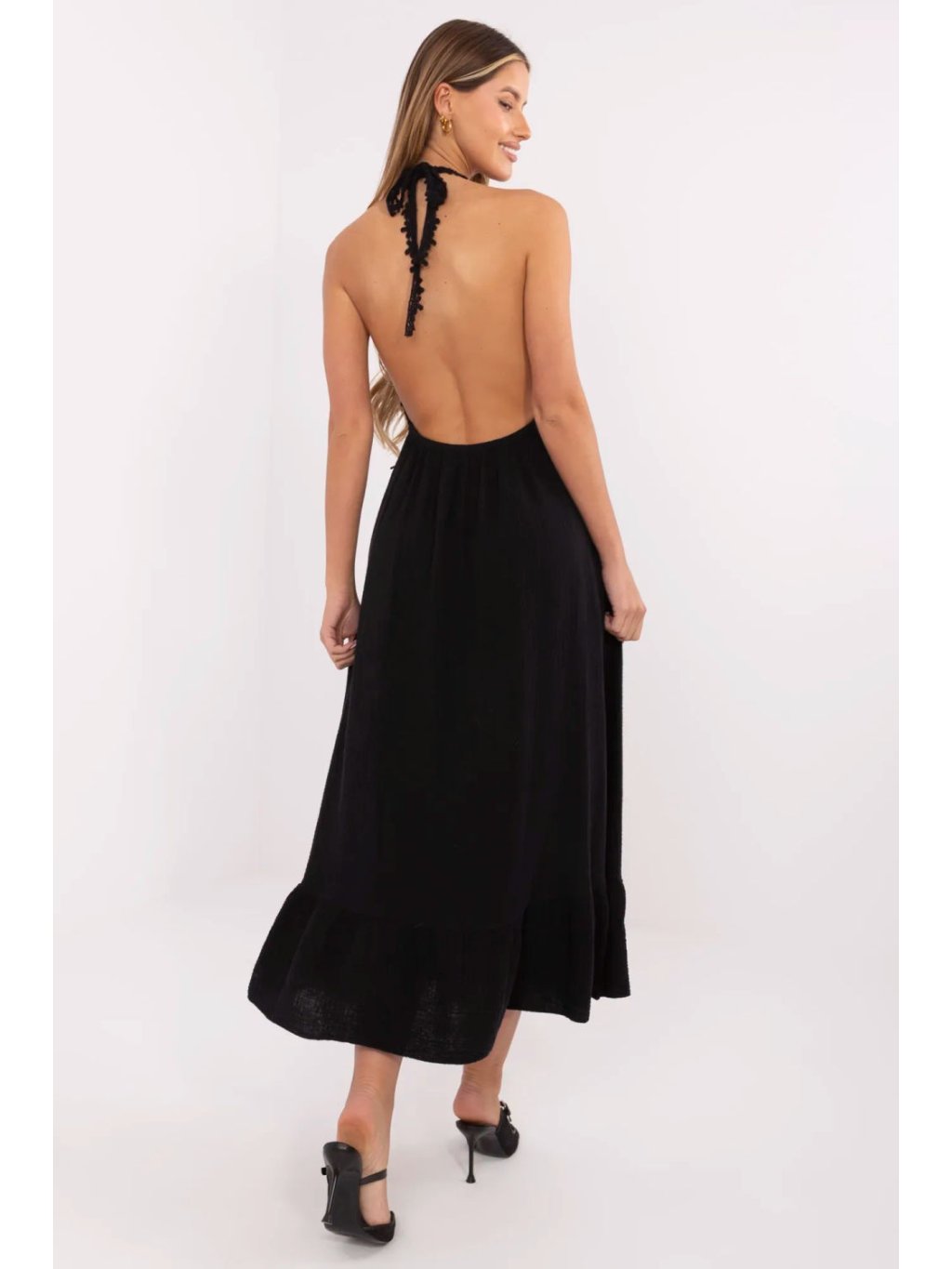 Přidejte do svého šatníku trochu letní pohody a ženského šarmu s touto rozevlátou šaty v boho stylu. Vyrobená z prodyšné bavlny s přídavkem elastanu, zaručuje pohodlí a volnost pohybů i v horkých dnech. Midi šaty s vázanými ramínky kolem krku krásně zdůrazňují ramena a záda. Výstřih do srdíčka jemně podtrhuje ženskou siluetu, a ozdobná krajková výšivka na přední straně dodává celku romantický charakter. Hladký materiál a volán na spodku dělají šaty lehké a vzdušné. To je ideální volba na každodenní letní události, procházku, pláž nebo setkání s přáteli. Boho styl v nejlepším, ženském provedení. Délka šatů je uvedena v tabulce bez vázání. Délka vázání je 72 cm.