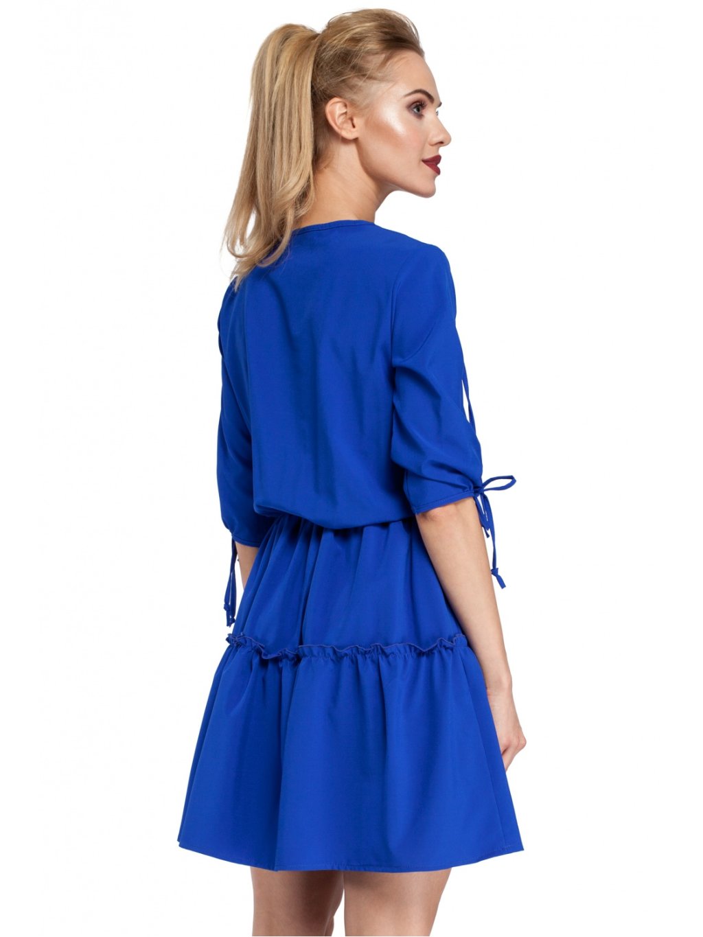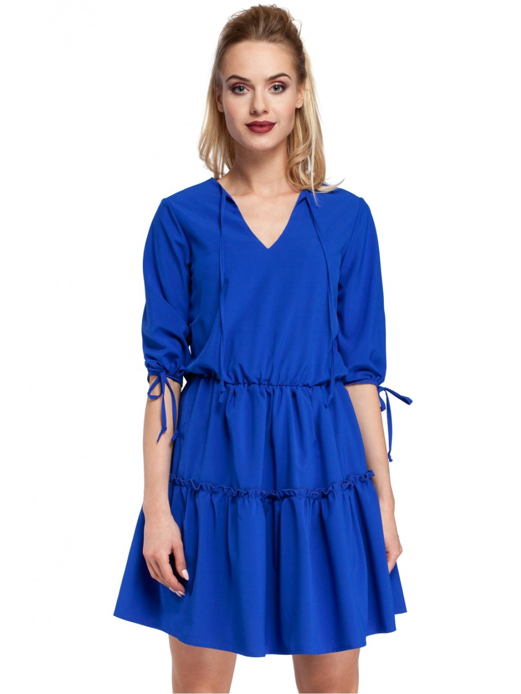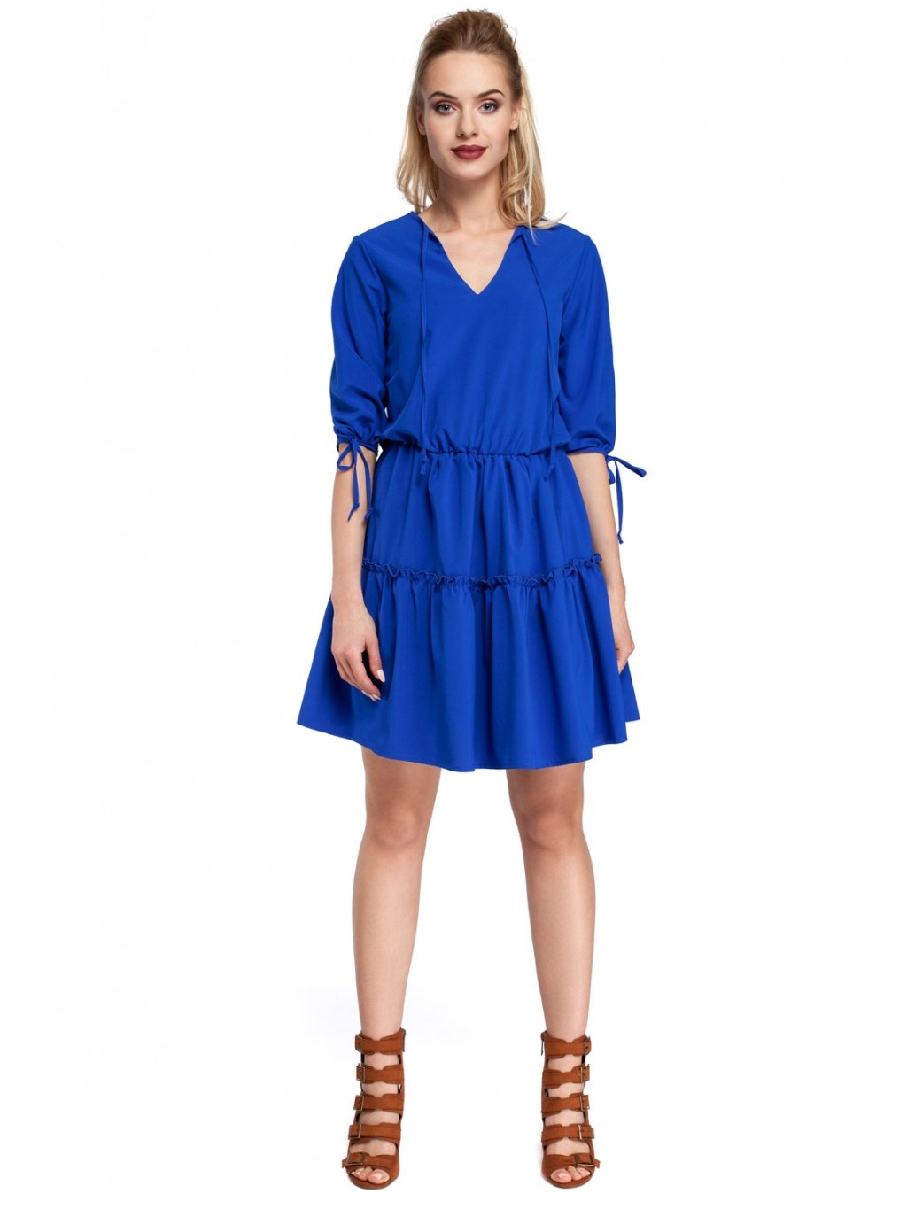 Neuvěřitelně módní šaty inspirované boho stylem se dvěma plisovanými volánky a zavazováním za krkem a ve spodní části rukávů. Vyrobeno ze vzdušné tkaniny. Absolutní nutnost.