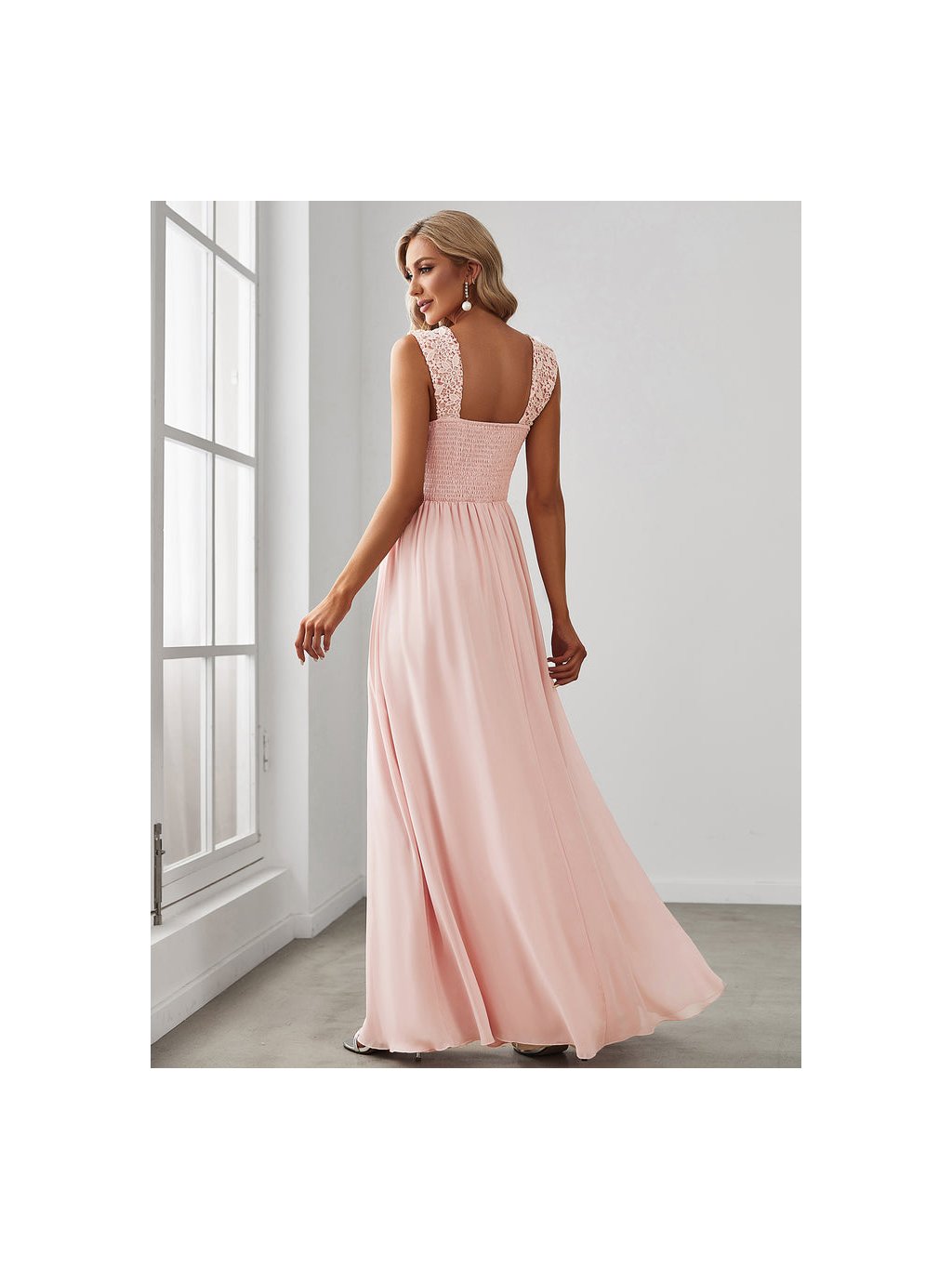 Luxusní světle růžové šaty Ever Pretty. Šaty mají široká ramínka, vrchní díl je zdobený krajkou a na zádech mají žabičkové řasení, šaty tím drží tam kde mají.