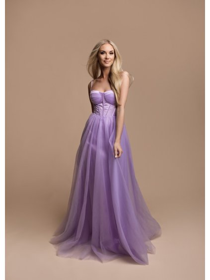 Krásné dlouhé šaty saténový korzet , tylová sukně fialová Další barvy