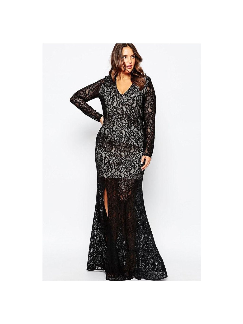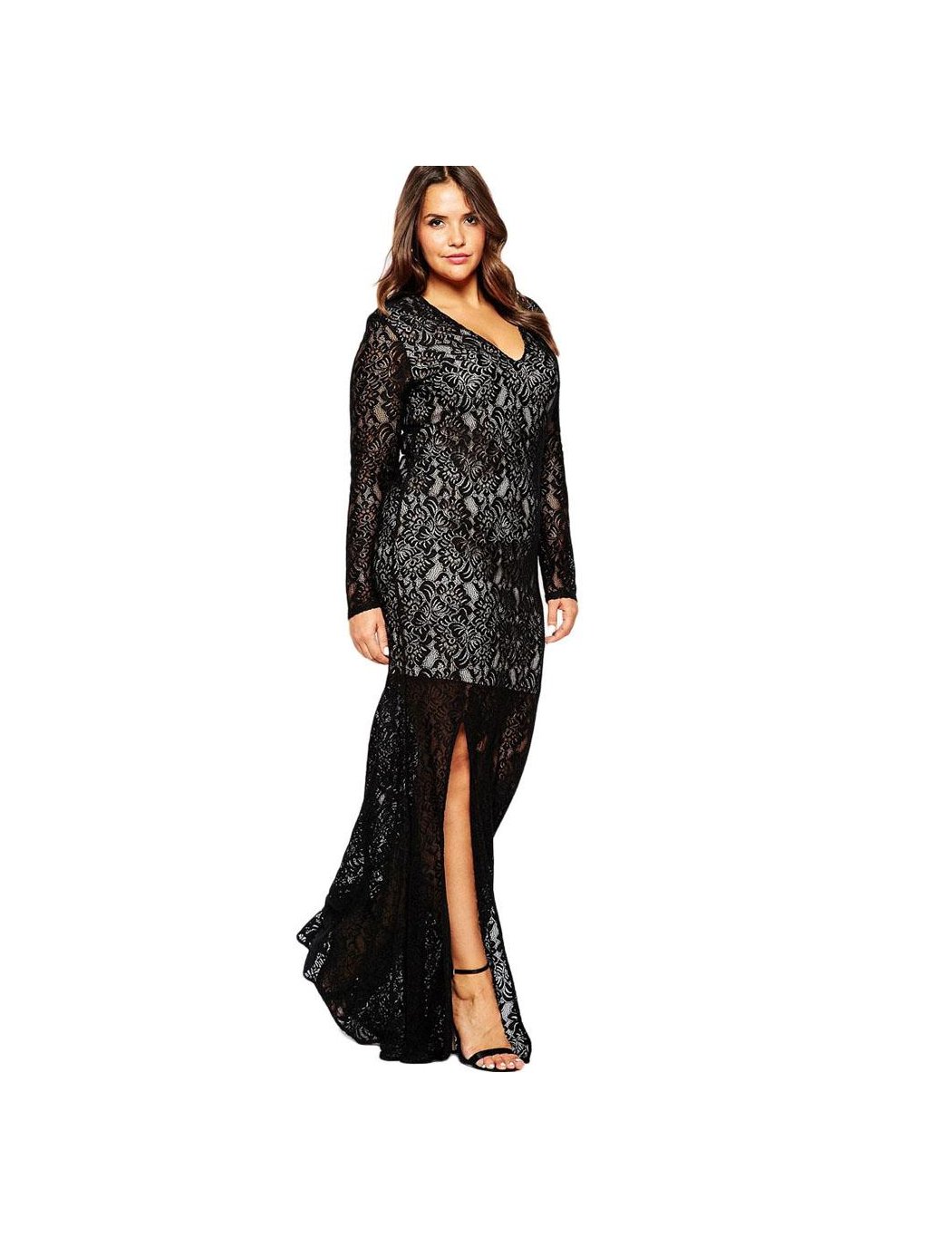 A Dlouhé černé krajkové šaty 60793