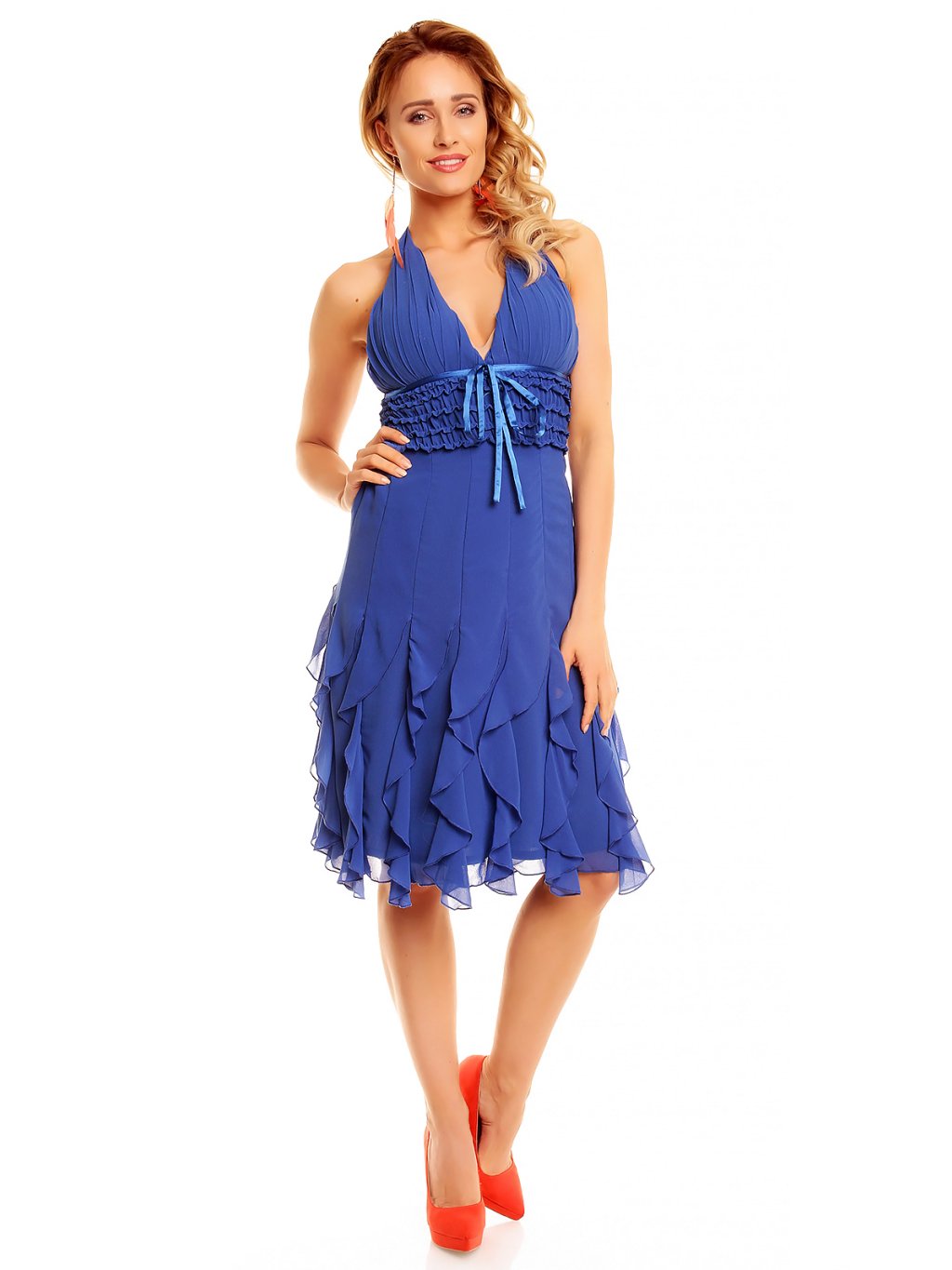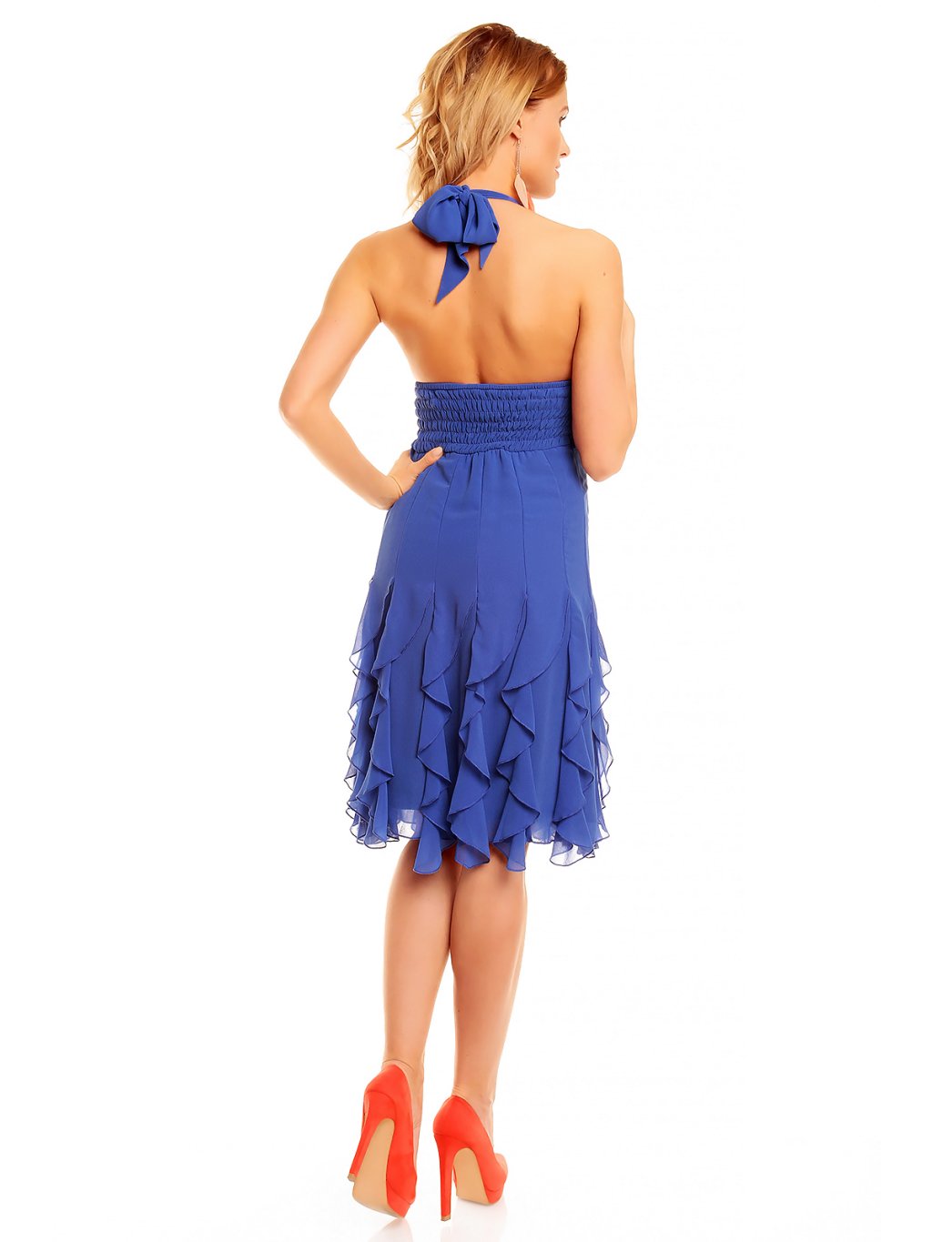 Krátké modré šaty s volánky hs 310