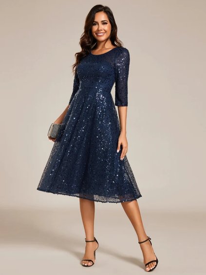 Společenské šaty s flitry v midi délce, s tříčtvrtečními rukávy. Další barvy zde.