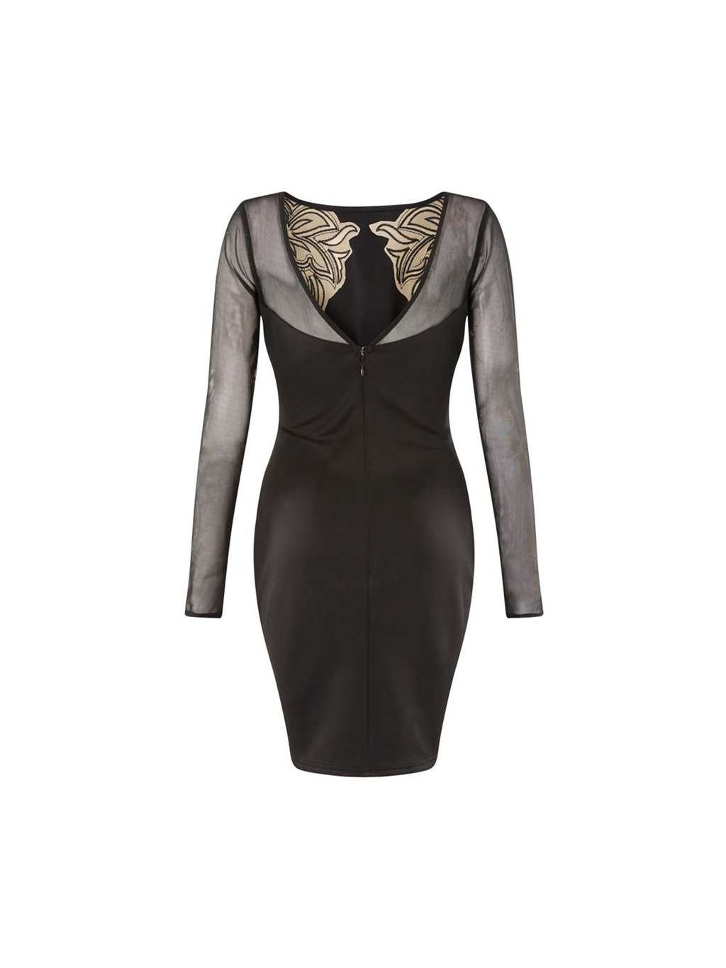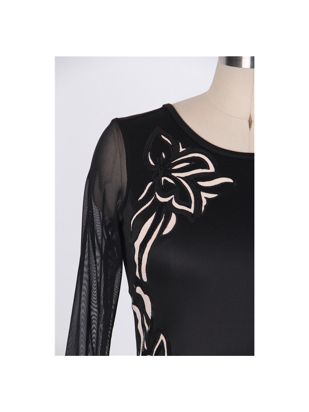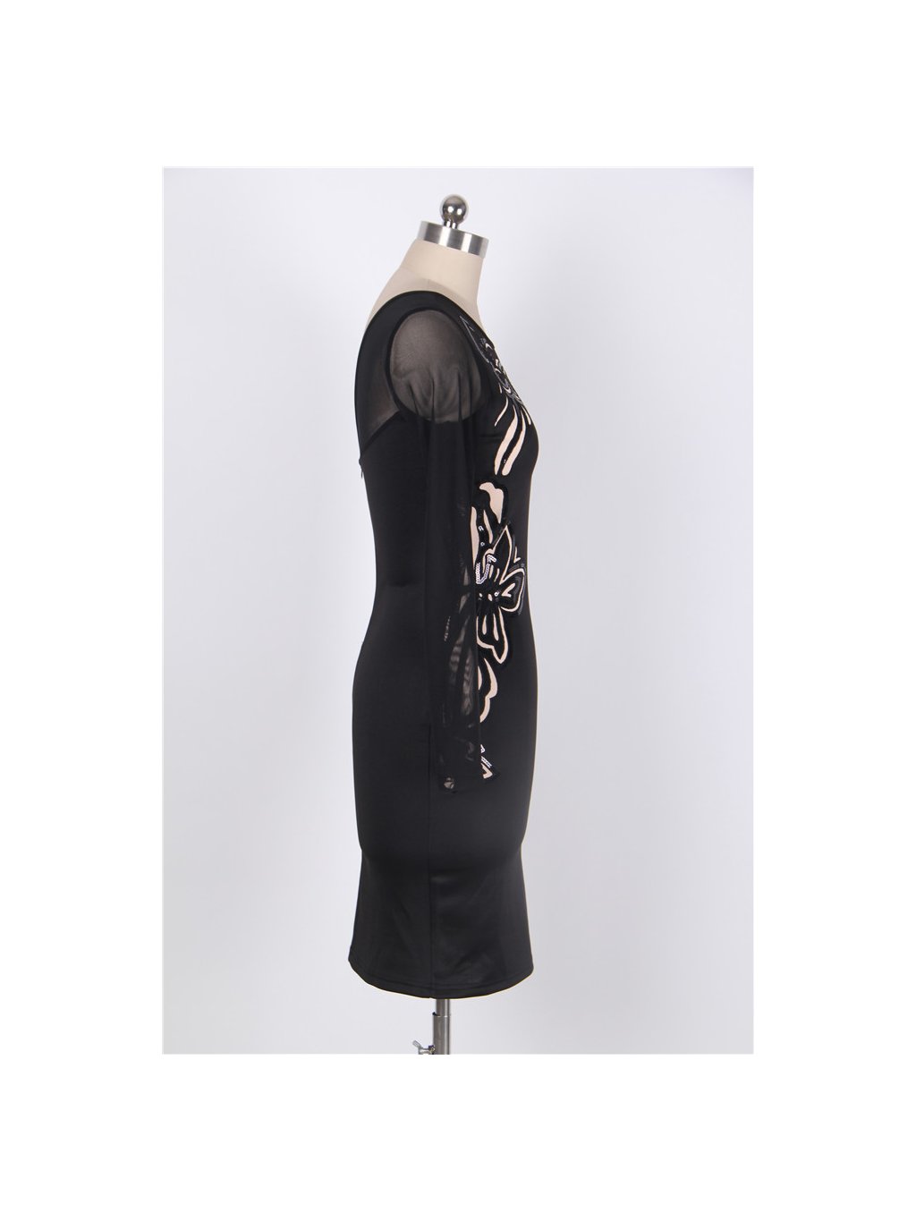 A Šaty černé vyšité vzory bodycon s rukávy OH170