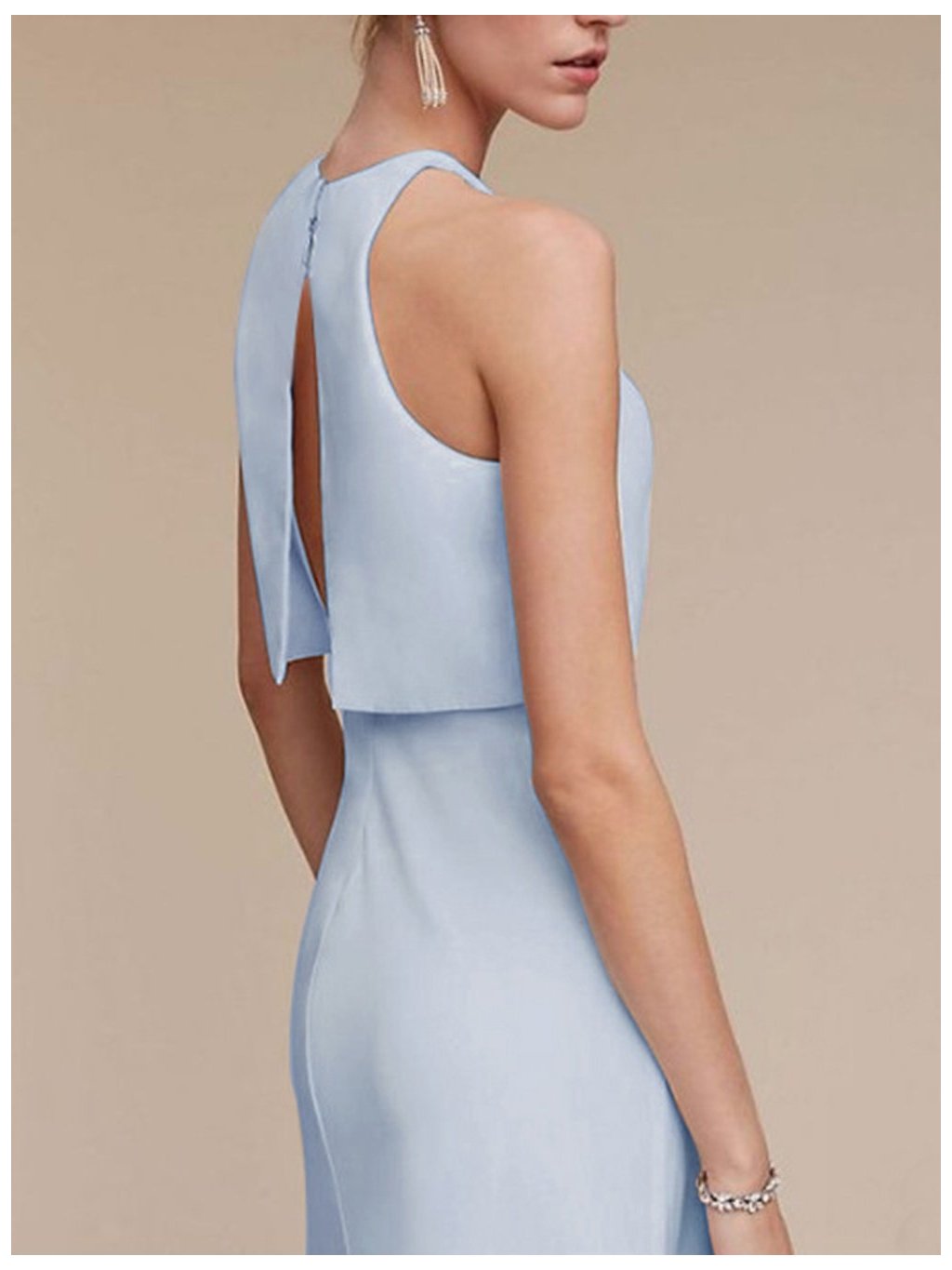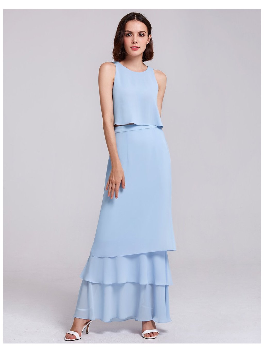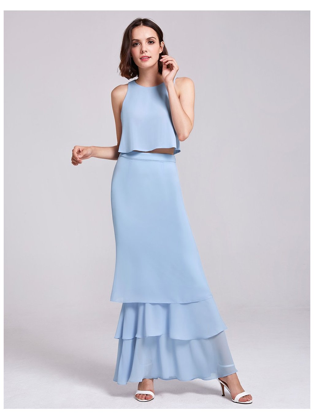 Krásné dlouhé šaty. Součástí je sukně a volný vrchní díl s výkrojem na zádech. Vrchní díl má lodičkový výstřih a je na široká ramínka.