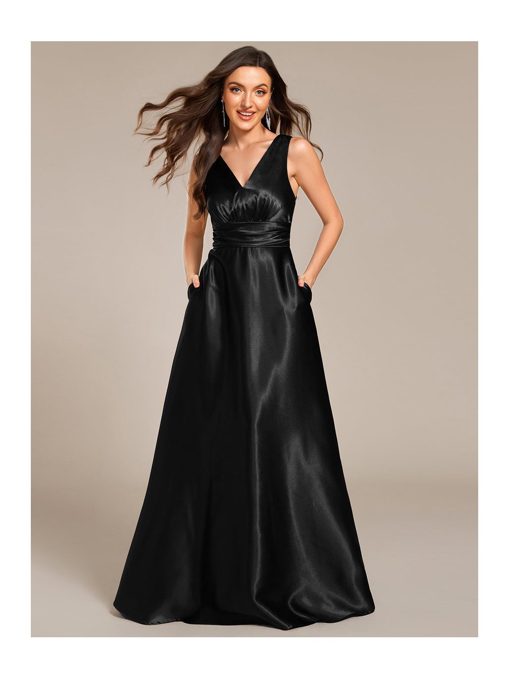 Luxusní saténové šaty s kapsami na ples, vhodné i do tanečních. pro družičky.