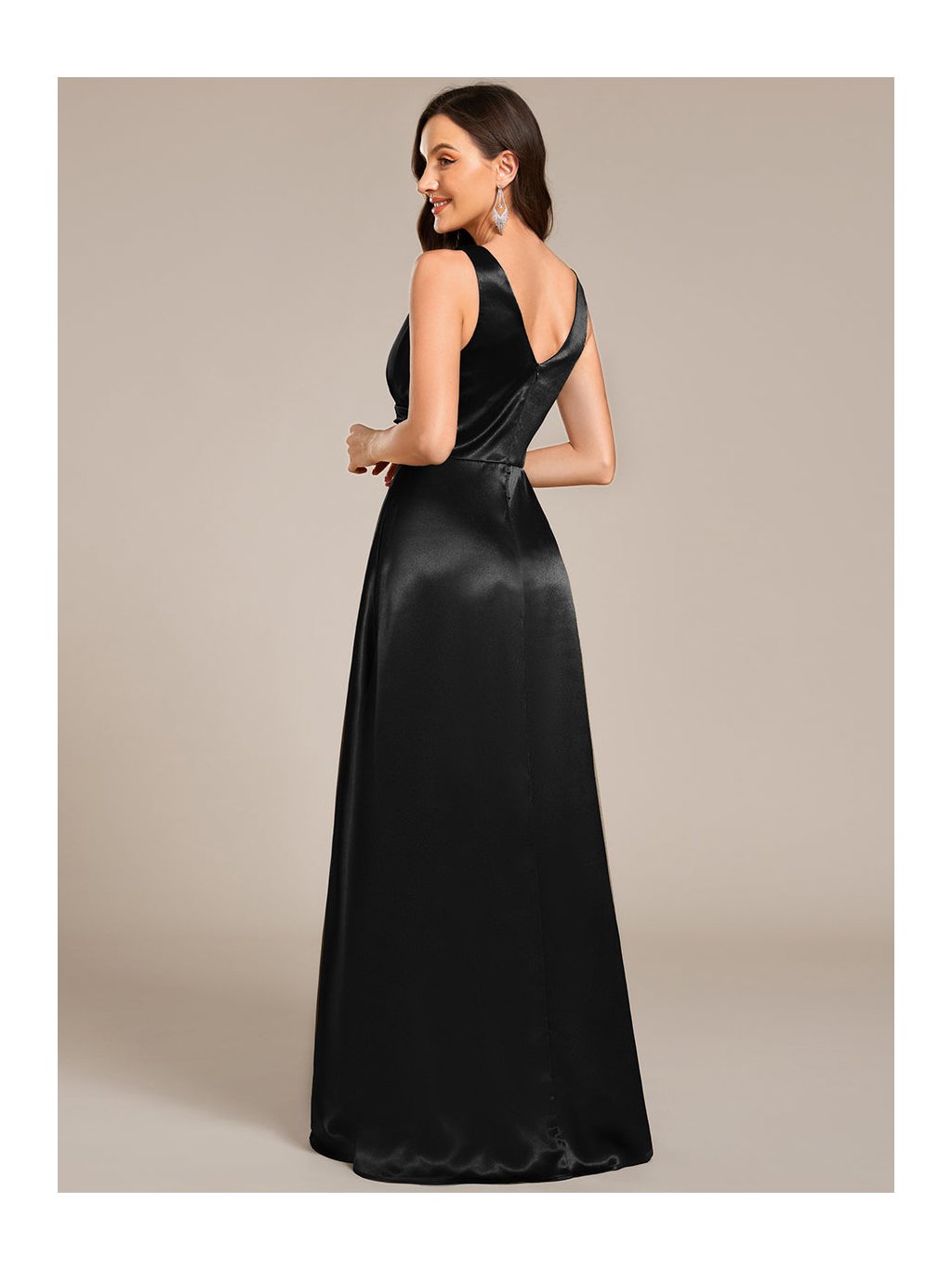 Černé plesové saténové šaty s kapsami 2326