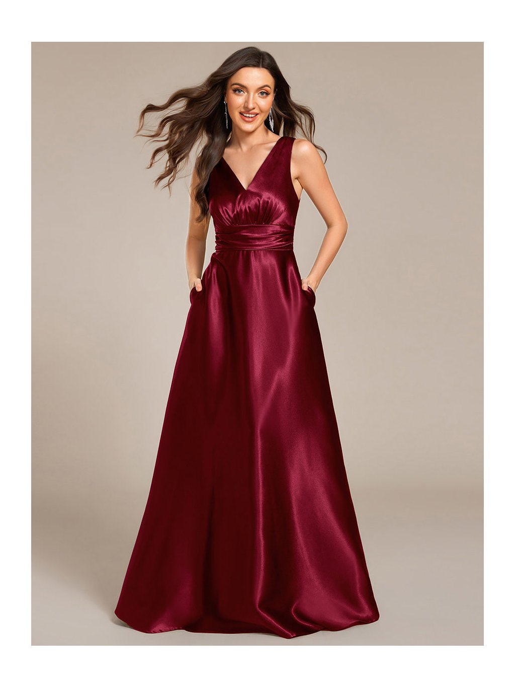 Dámské plesové saténové šaty s kapsami 2326
