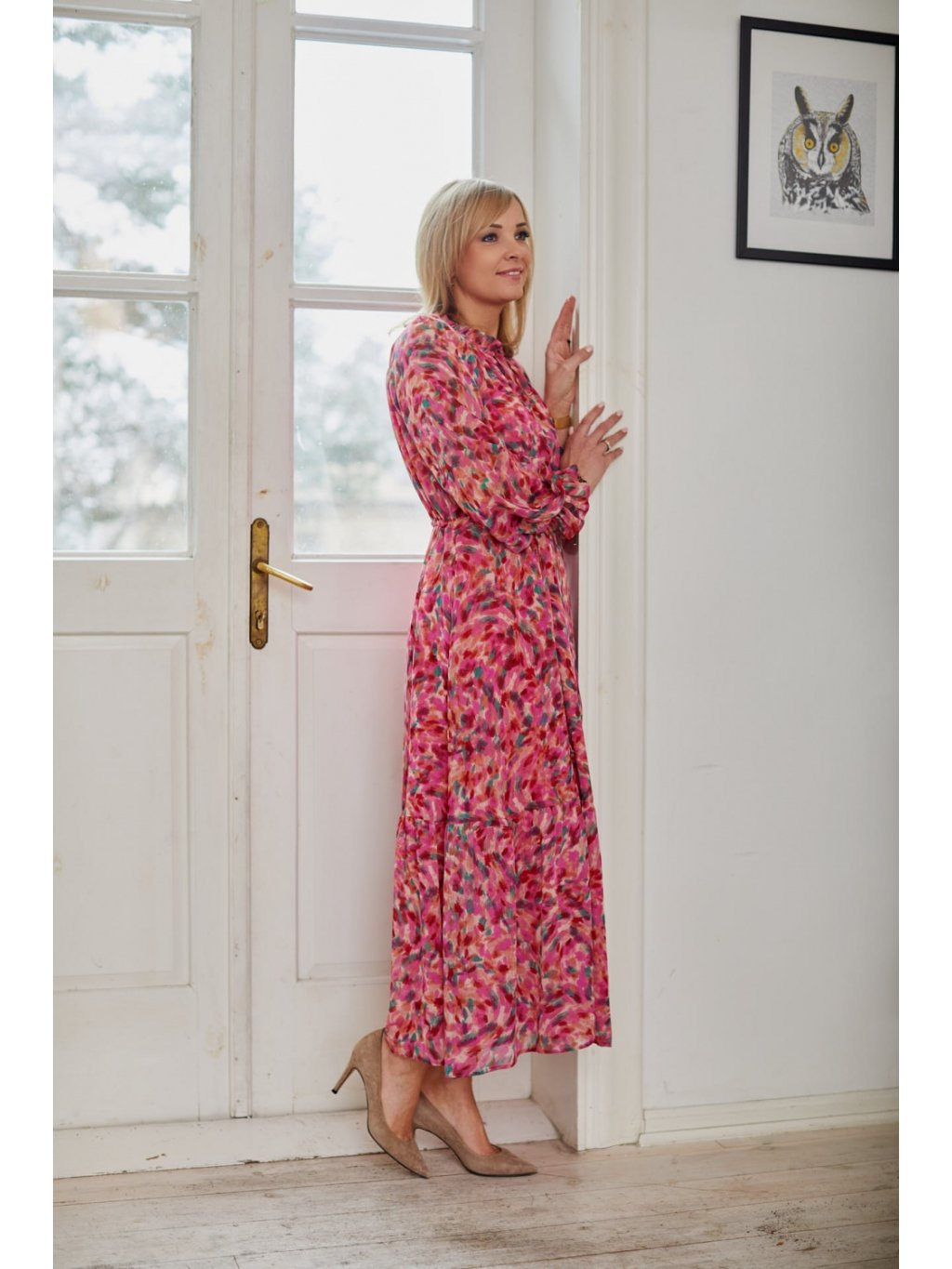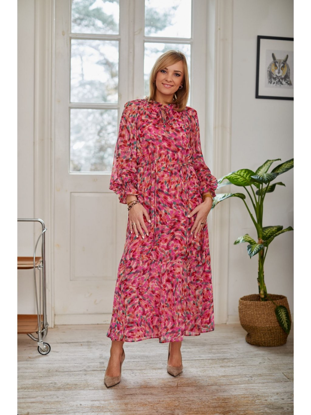 Fenomenální šifonové šaty v boho stylu v nadpozemských barvách. Maxi šaty s krásnými štípanými a zvrásněnými lemy. V pase nastavitelný tunel se šňůrkou. Široké volánové rukávy zakončené gumou, kovovým kováním a mimořádně pečlivým zpracováním z vás udělají jedinečnou osobnost. Vše vyrobeno v souladu se směrnicemi LAAUROR, tj. vhodné pro širokou škálu věkových kategorií a velikostí. Výrobek s elastickou podšívkou.