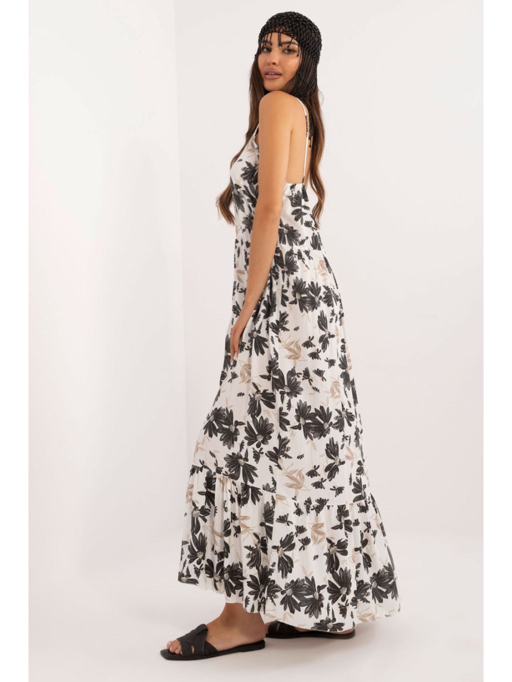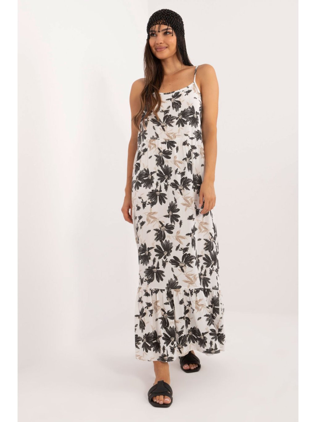 Tyto letní šaty jsou ideální volbou pro každodenní nošení. Jsou vyrobeny ze vzdušné viskózy a poskytují pohodlí v teplých dnech. Rozšířený midi střih dodává šatům lehkost a ležérnost a dokonale zvýrazňuje siluetu. Jemný květinový potisk dodává šatům romantický půvab a ženskost. Šaty bez ramínek s obdélníkovým výstřihem krásně odhalují ramena a dekolt. Bonusem je volánek ve spodní části, který dodává celkovému vzhledu jemnou eleganci a pohyb. Jedná se o univerzální šaty, které se skvěle hodí na procházky, setkání s přáteli nebo letní výlety a které kombinují pohodlí s módním vzhledem.