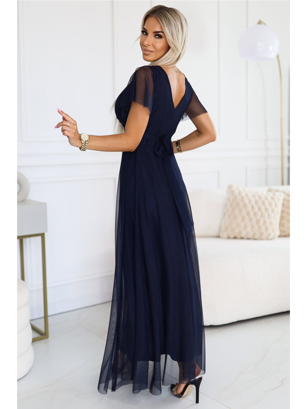 Dlouhé šaty tmavě modré tyl 203093 Numoco