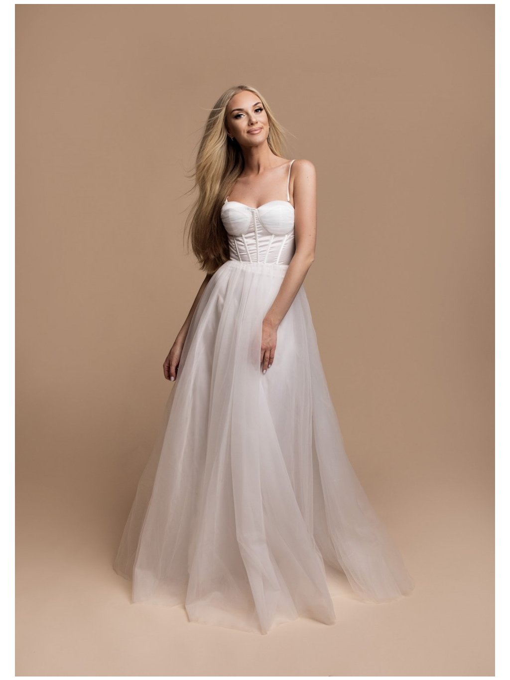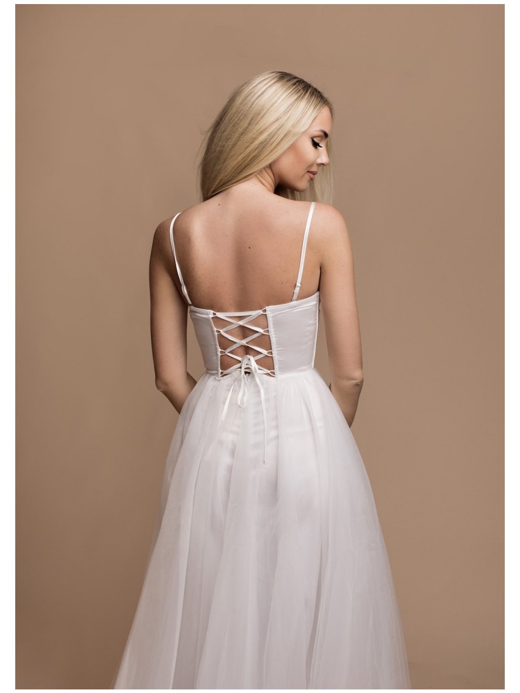 Stylové šaty společenské hladký saténový korzet, tylová sukně špagetová ramínka(ramínka jsou oddělávací) ,vzadu na šněrování