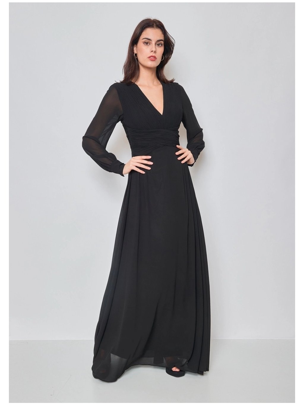 Stylové šaty společenské dlouhé s dlouhým rukávem ,velkým výstřihem,a s vykrojením na zádech