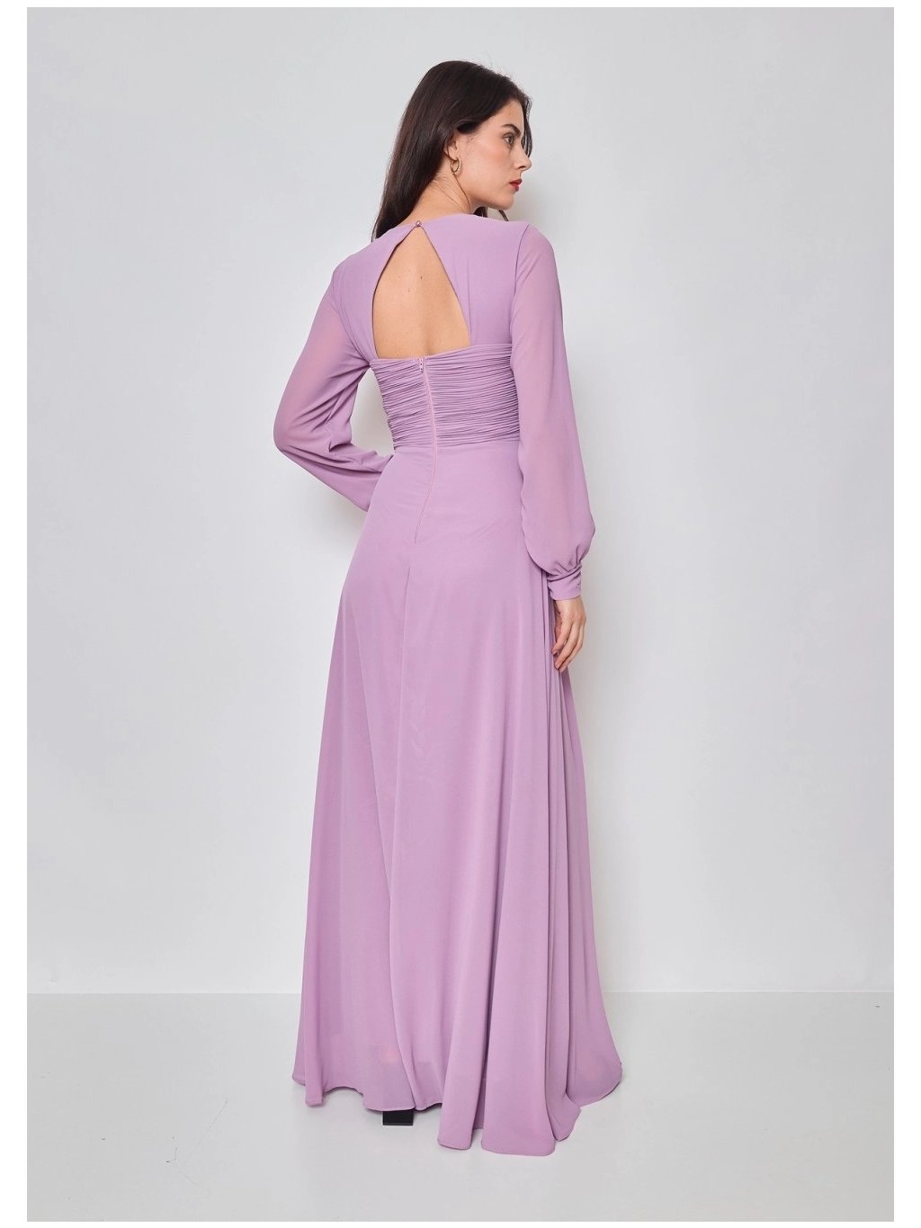 Stylové šaty společenské dlouhé s dlouhým rukávem ,velkým výstřihem,a s vykrojením na zádech