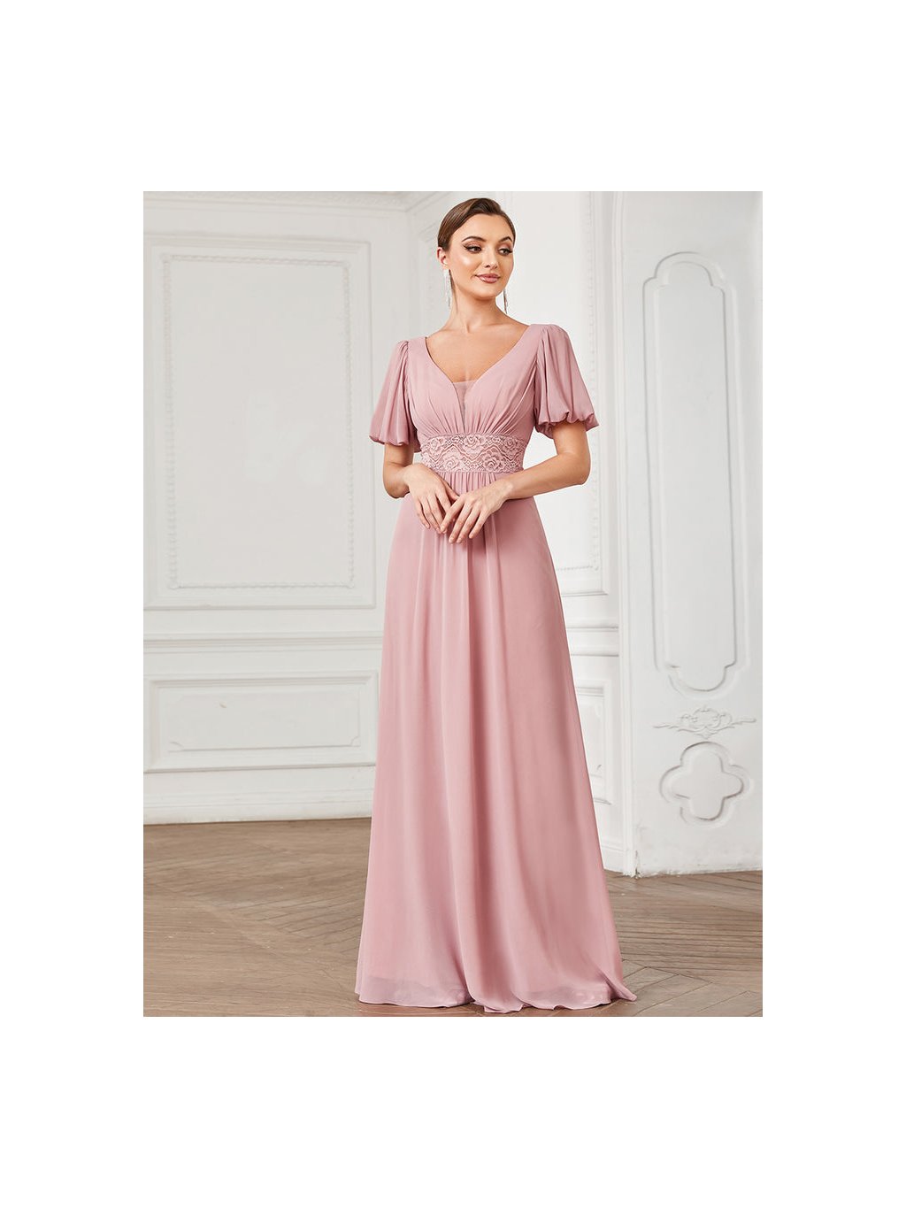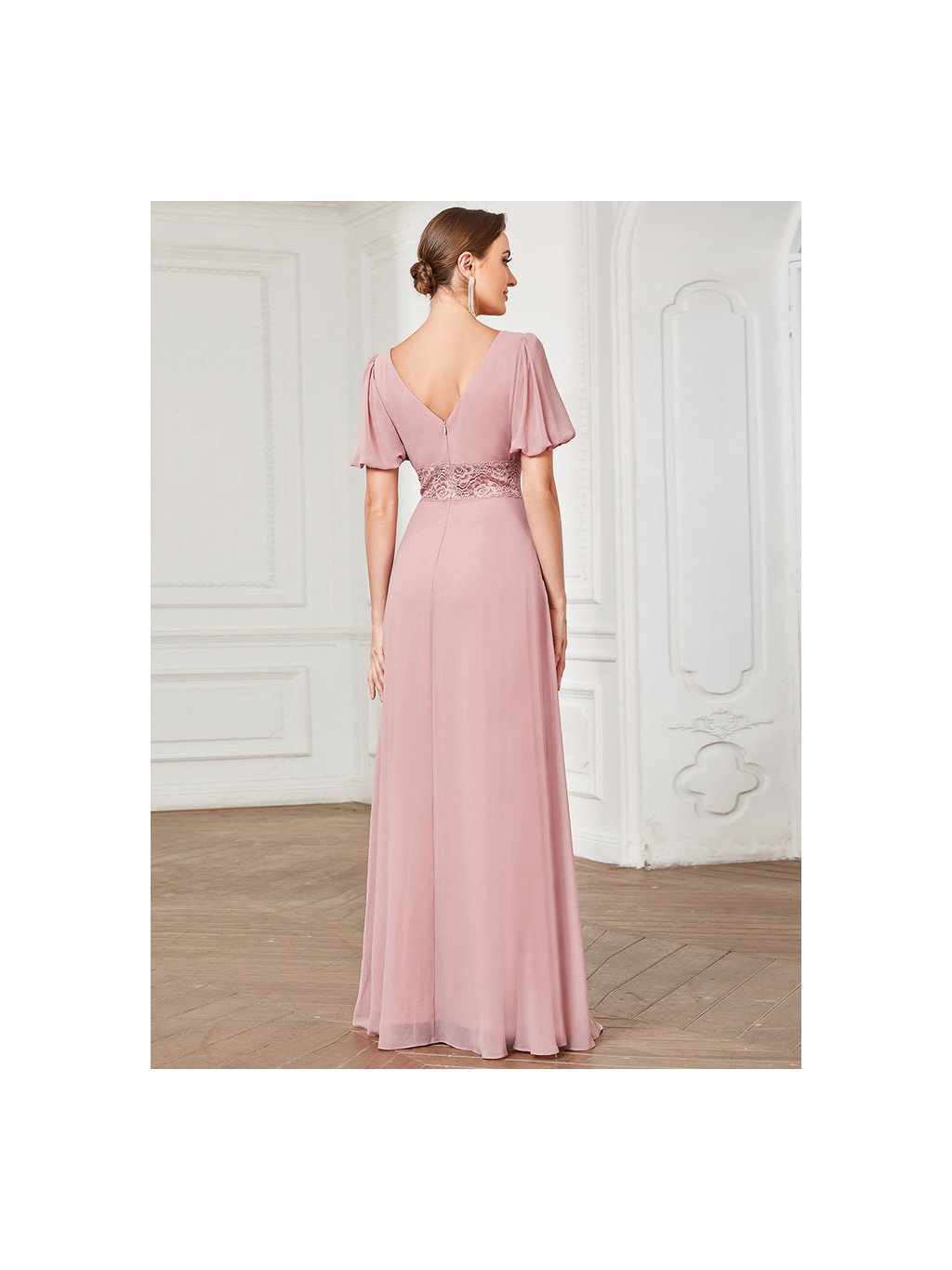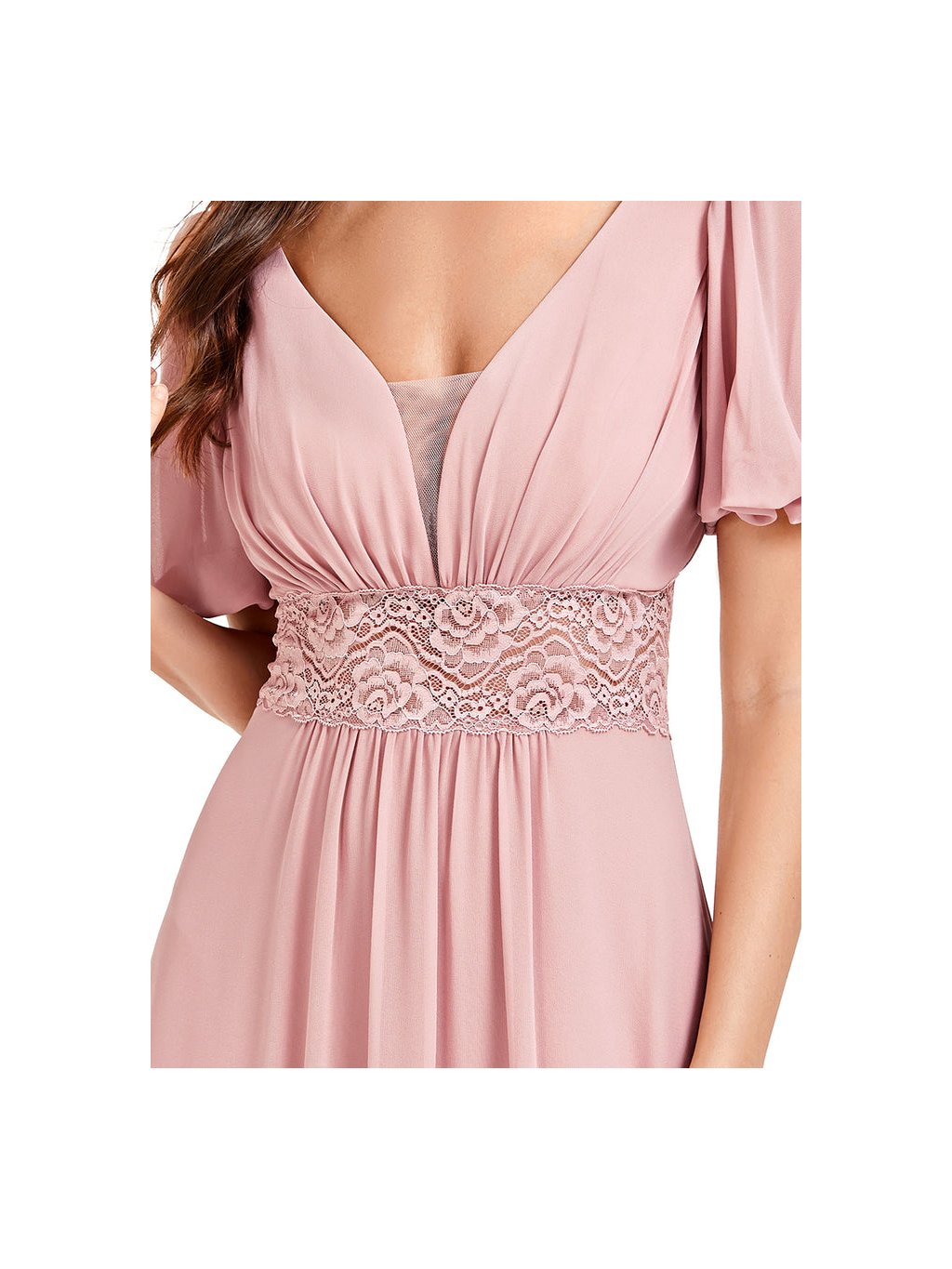 Luxusní starorůžové šaty Ever Pretty s krajkou. Šaty mají hladkou sukni od topu jsou rozděleny jemnou krajkou.. Na prsou mají krásný výstřih a na zádech véčkový výstřih. Na zádech mají skrytý zip.