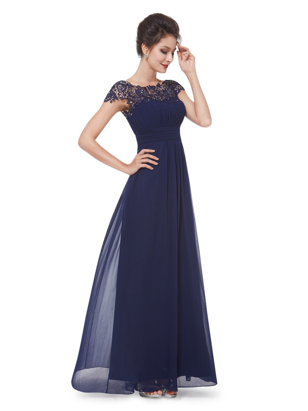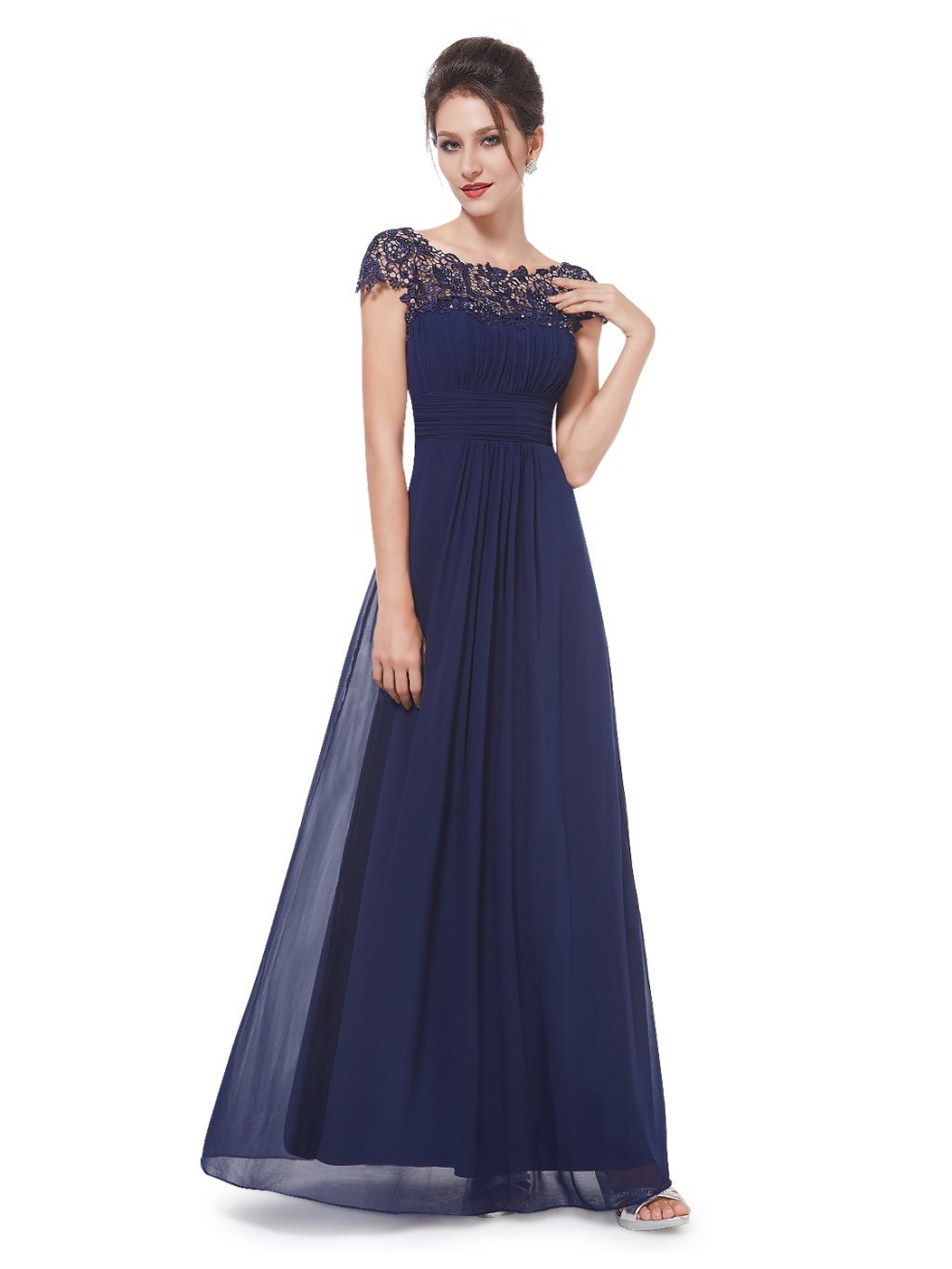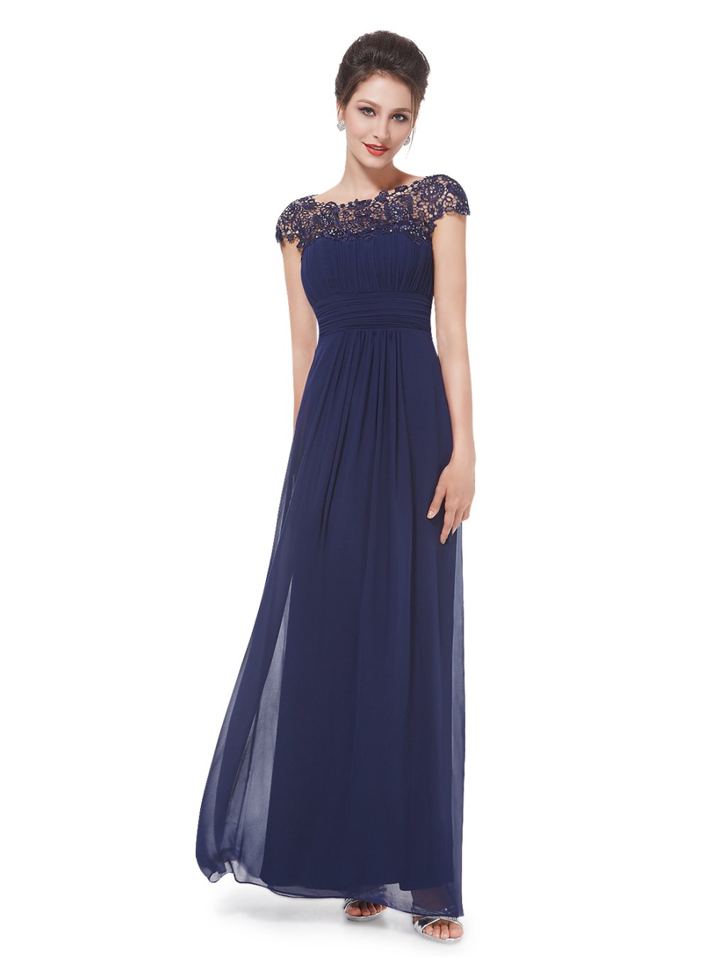 Luxusní šaty na ples, i do tanečních. Zdobené luxusní krajkou. Vložené vycpávky, je možné vzít bez podprsenky. Neoblíbenější model šatů Ever Pretty v tmavě modré barvě. Tyto dlouhé plesové šaty jsou naprosto fantastické a vhodné především na velké slavnostní plesy. Tmavě modrá barva je na společenských šatech velmi elegantní a stylová. Jemné šaty v kombinace s krajkou ve vrchní části. Když půjdete na velký Městský ples nebo na ples V Opeře s tímto modelem společenských šatů určitě neuděláte chybu!
