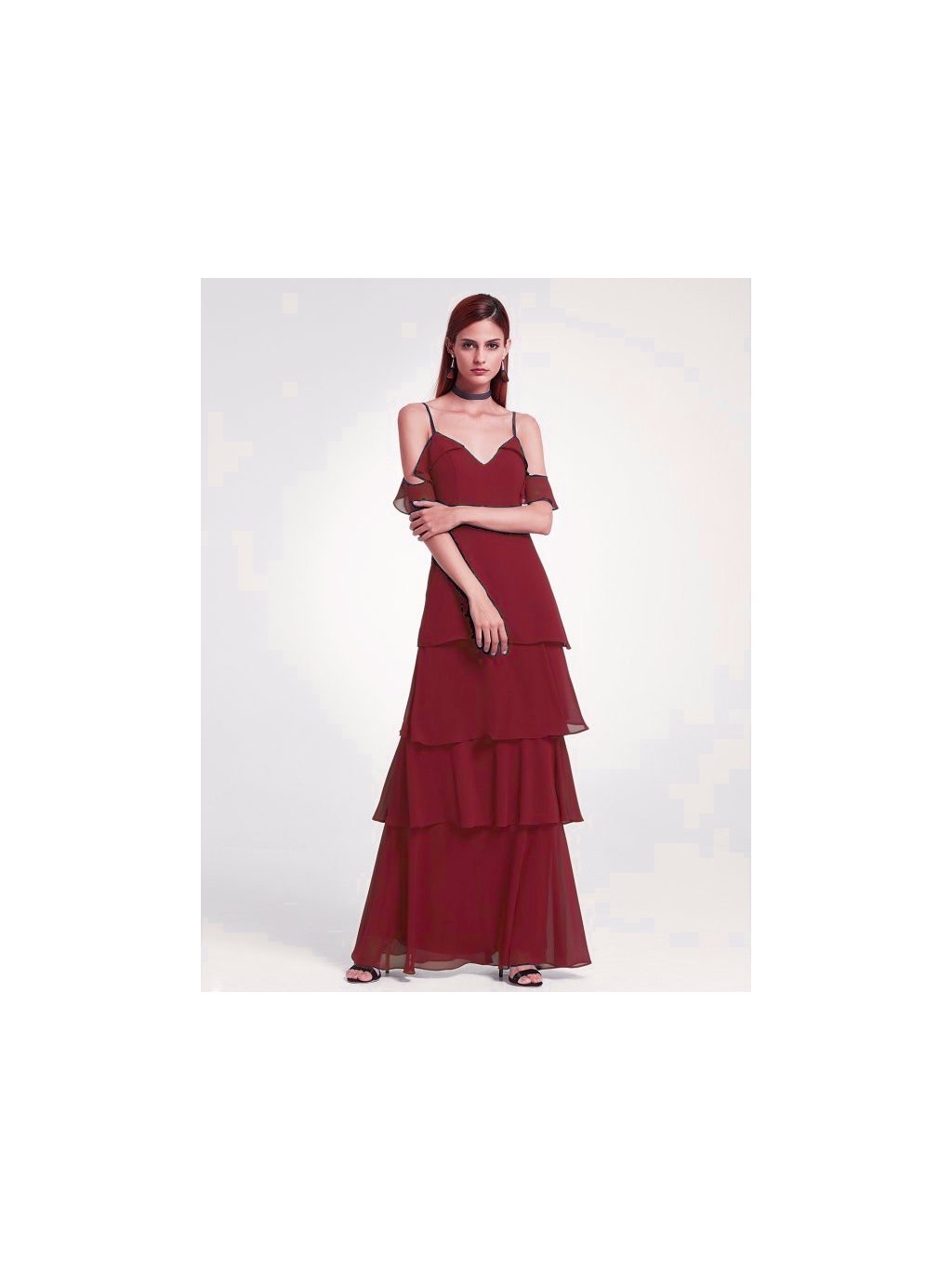 Krásné dlouhé šaty s volánky. Vhodné i pro družičky. Skrytý zip na zádech. Špagetová ramínka.