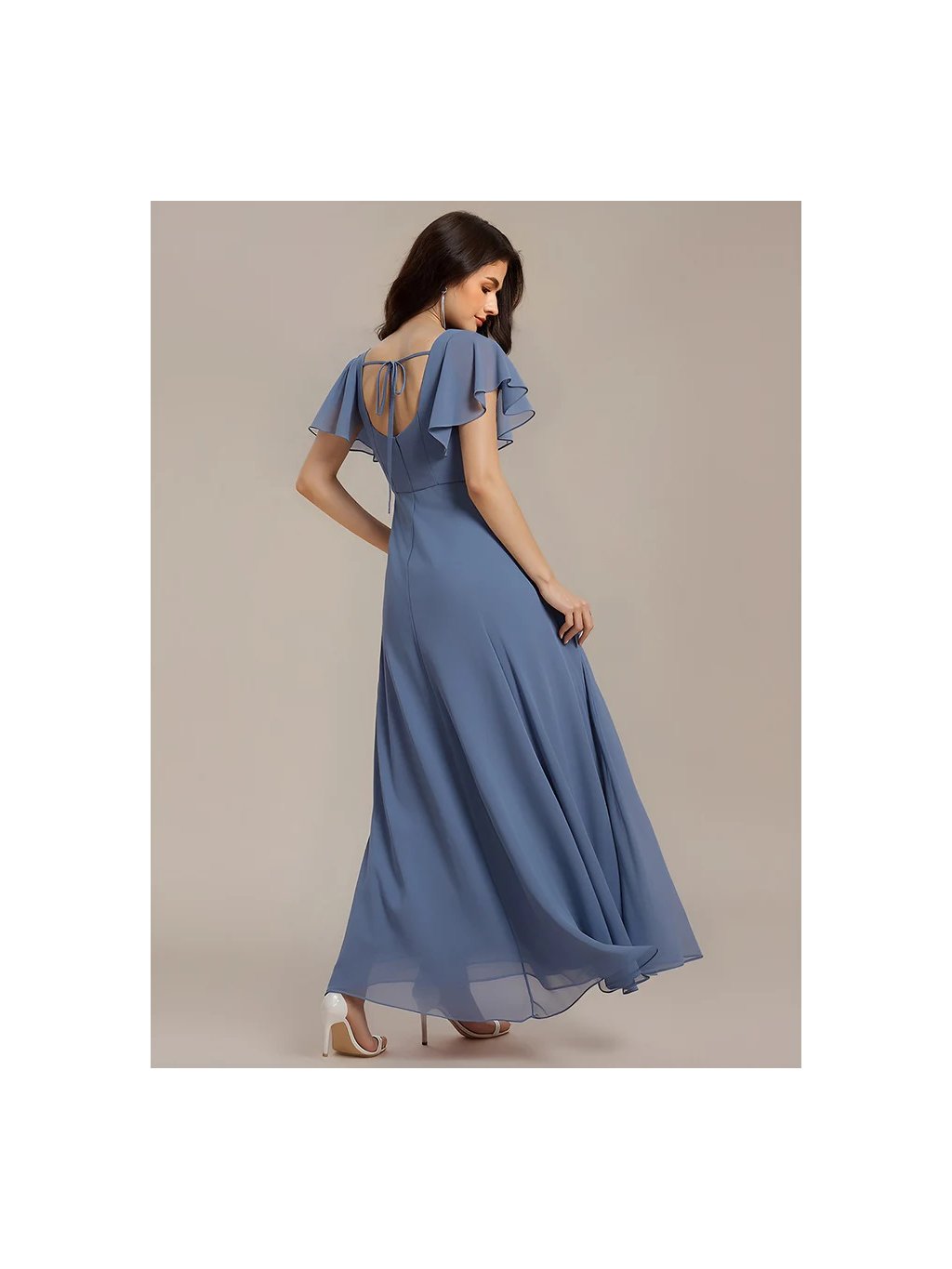 Jemné šaty s volánovým rukávem,čtvercový výstřih dokonalý jednoduchý design. Šaty jsou dlouhé po kotníky v zadu hluboký výstřih se šňůrkou na stažení.