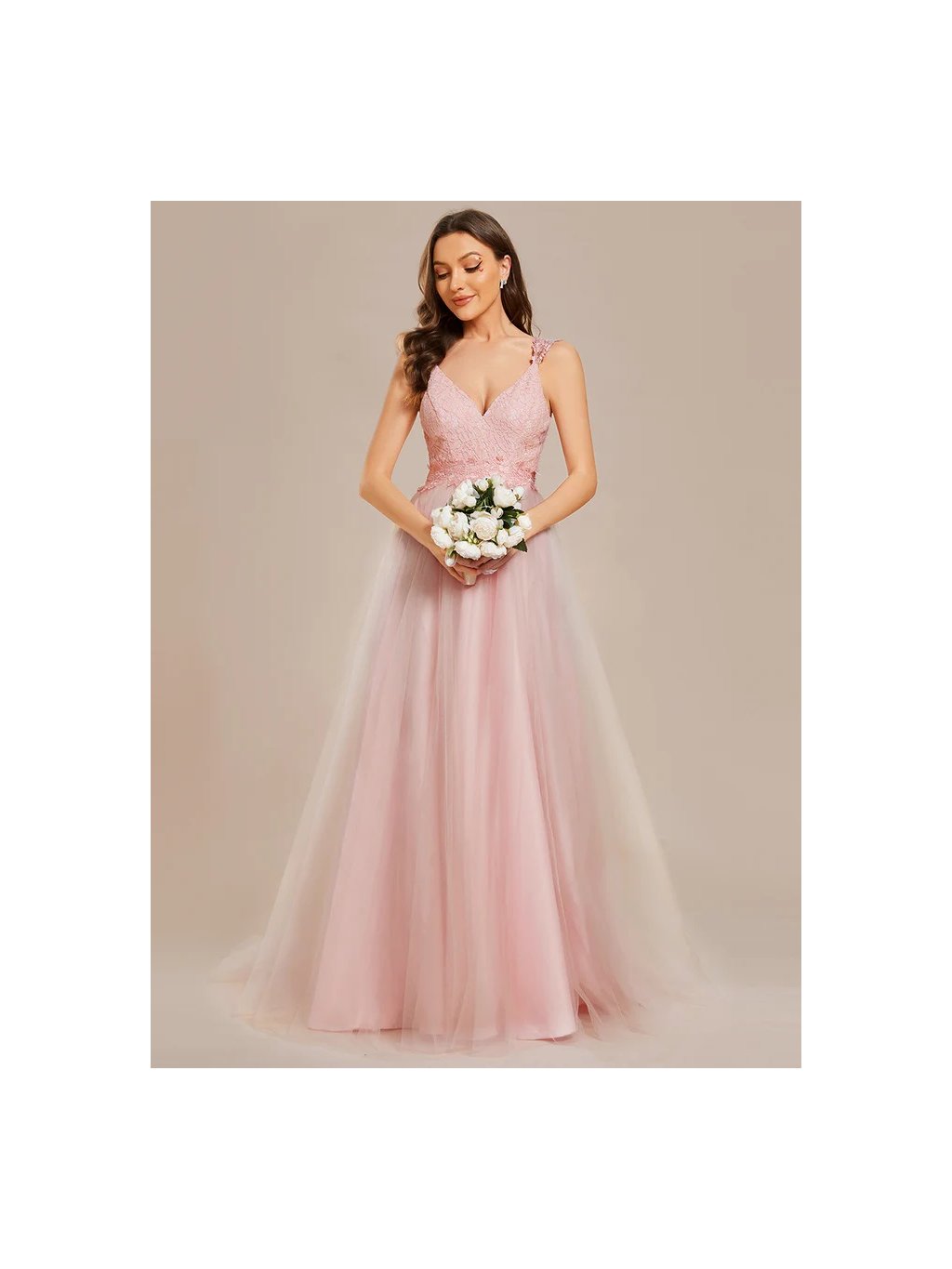 Úchvatné šaty Ever Pretty. Šaty mají krajkovaný top s špagetovými rukávy. Šaty zdobené výšivkou