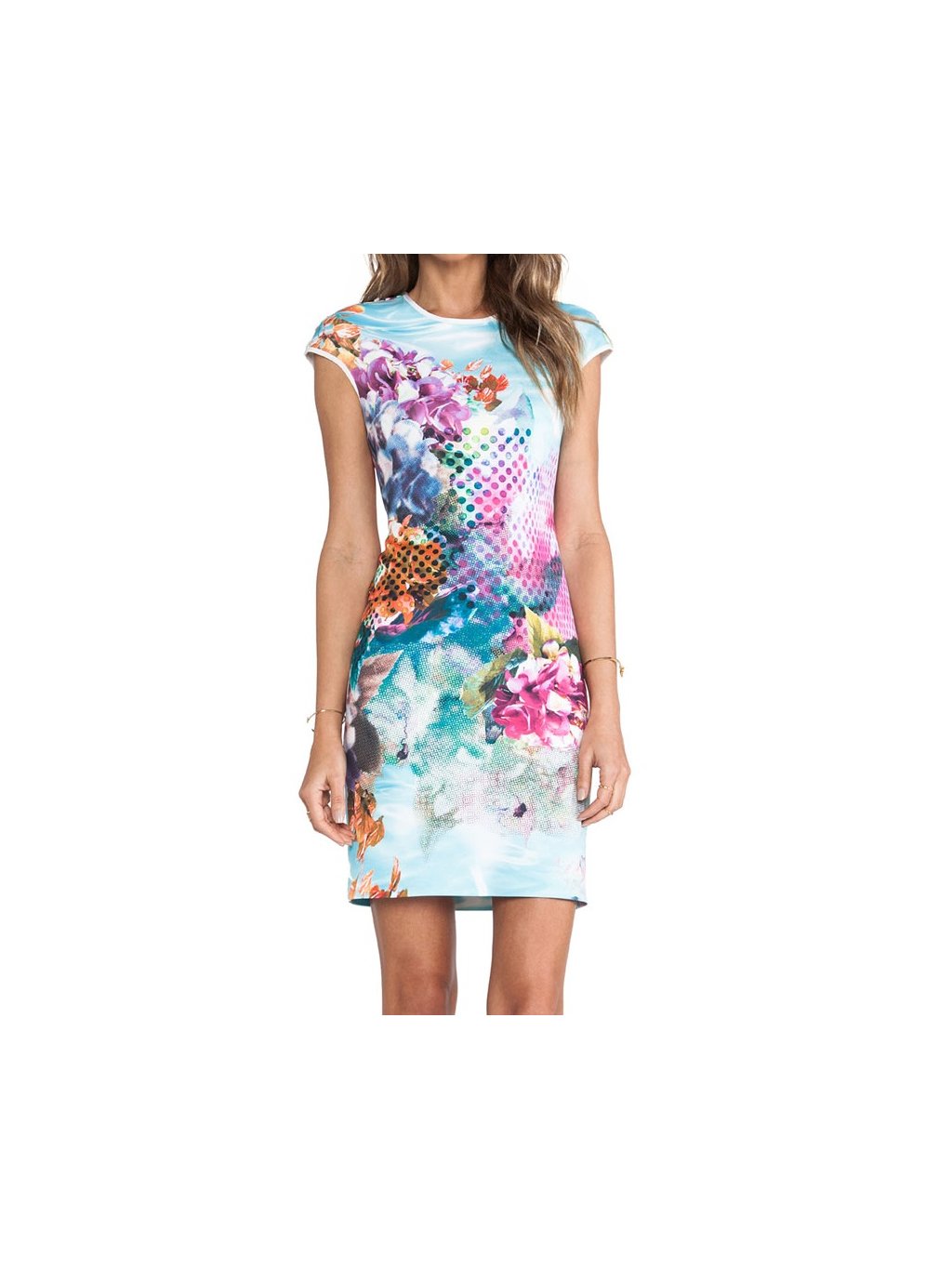 Krásné krátké koktejlové šaty, velký výstřih, špagetová ramínka, rozparek.