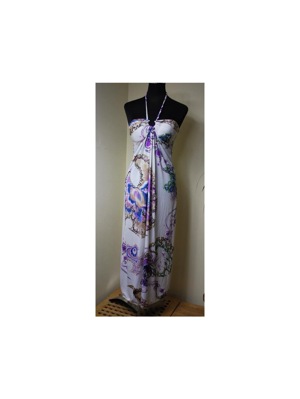 Dámské šatičky dlouhé - motivy květinové Buďte sexy s těmito originálními šatičkami budete elegantní v každé situaci. Velmi příjemný, jemný materiál, krásně se nosí. Na zavazování za krk, mezi prsy je kovová spojka. Vzadu jsou šatičky v oblasti prsou nařasené gumičkou, která Vám krásně udrží šaty na místě a přizpůsobí se Vaší postavě. Šatičky mají vycpávky na prsou.
