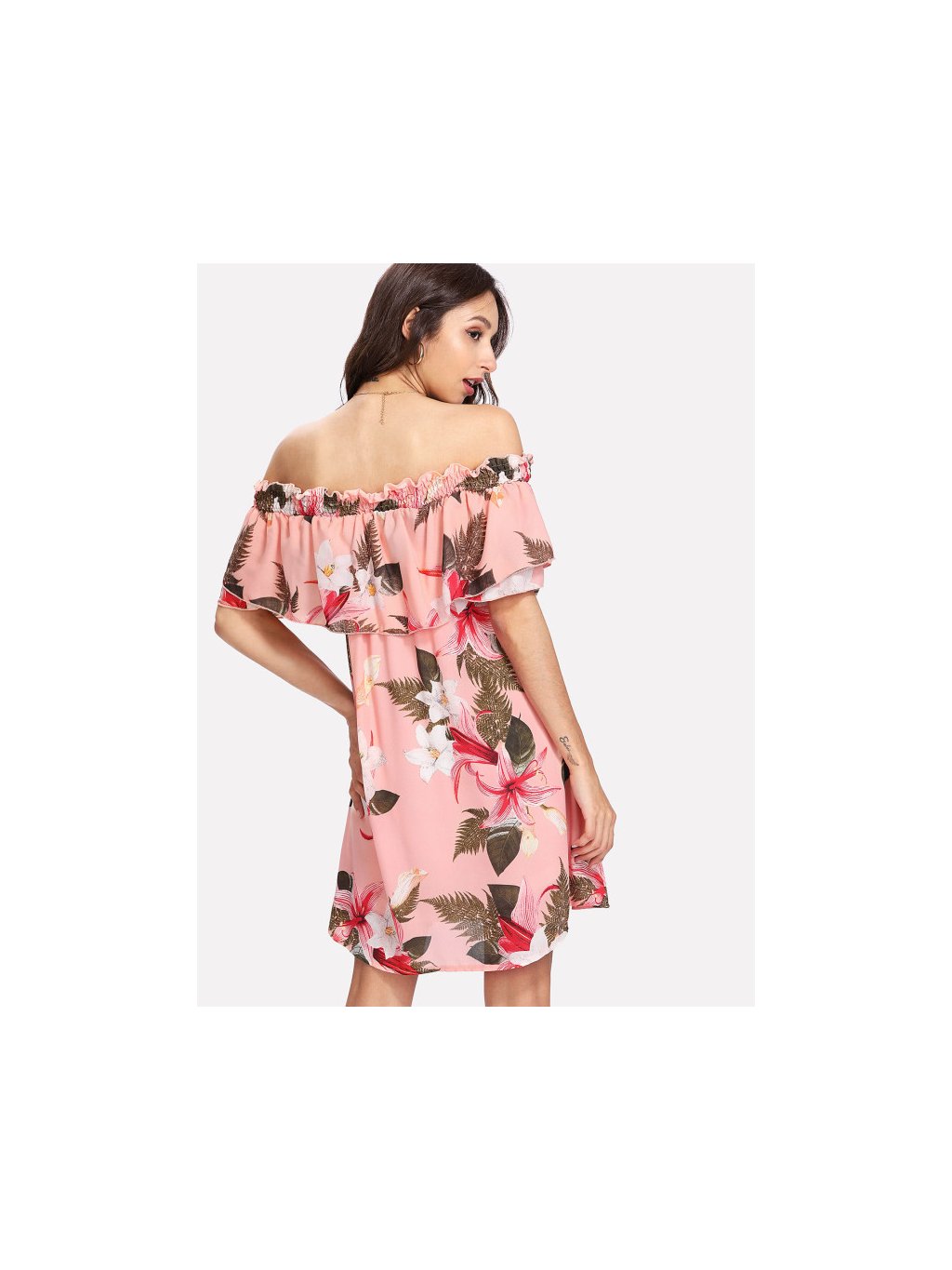 Dámské šatičky krátké. Jsou na pod ramena, přes prsa volánek, mají krásný květinový vzor. Buďte sexy s těmito originálními šatičkami budete elegantní v každé situaci. Velmi příjemný, jemný materiál, krásně se nosí.