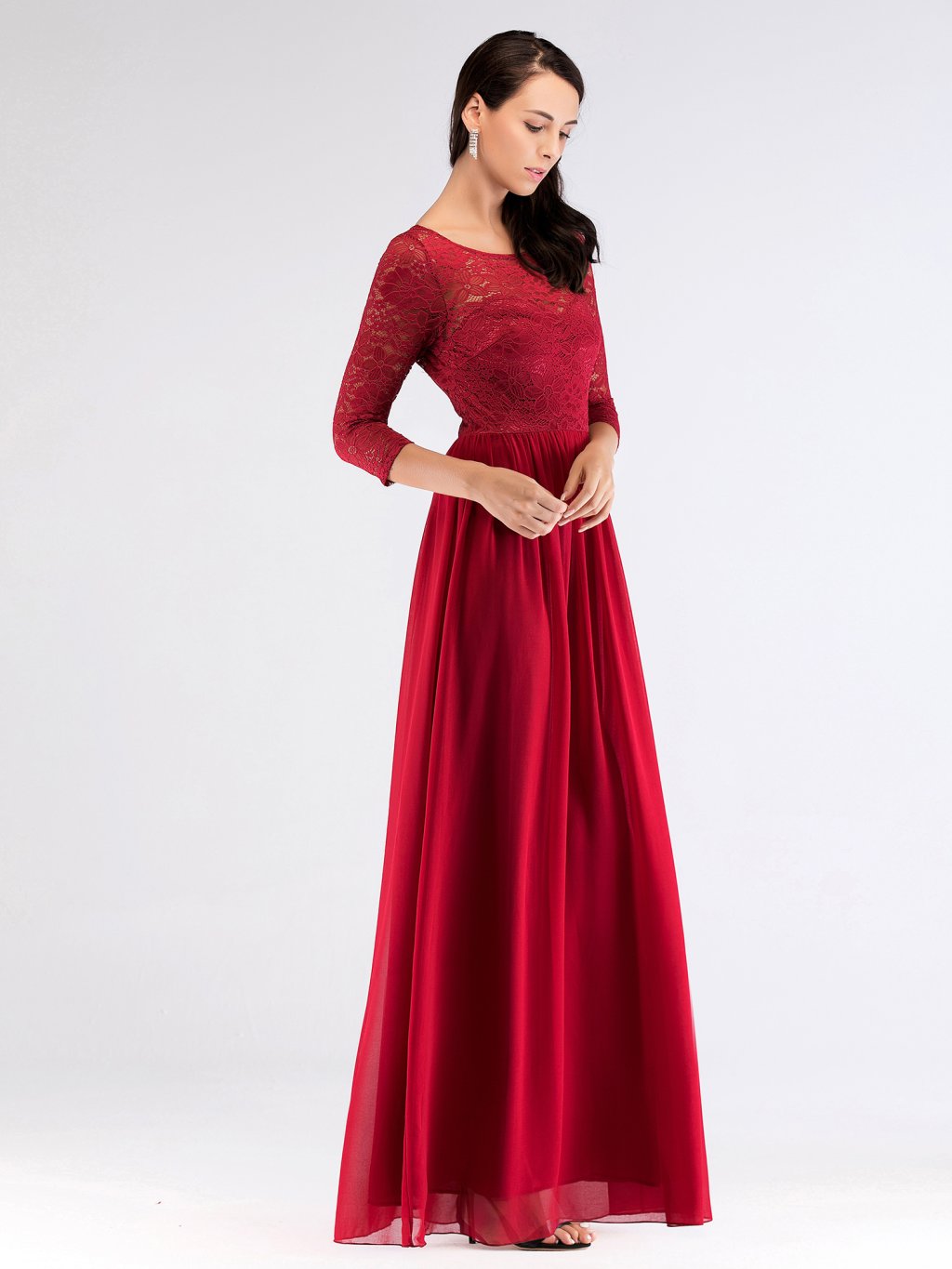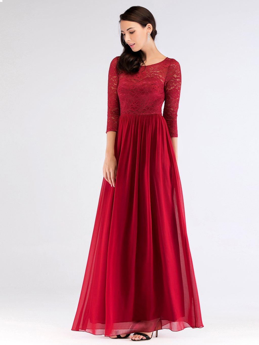 Skvělé dlouhé šaty Ever Pretty. Šaty mají 3/4 rukáv. Mají kulatý výstřih, na zádech mají kapičkový výstřih.. Vrchní díl je zdobený krajkou. Jsou z velmi příjemného materiálu a dělají pěknou postavu.
