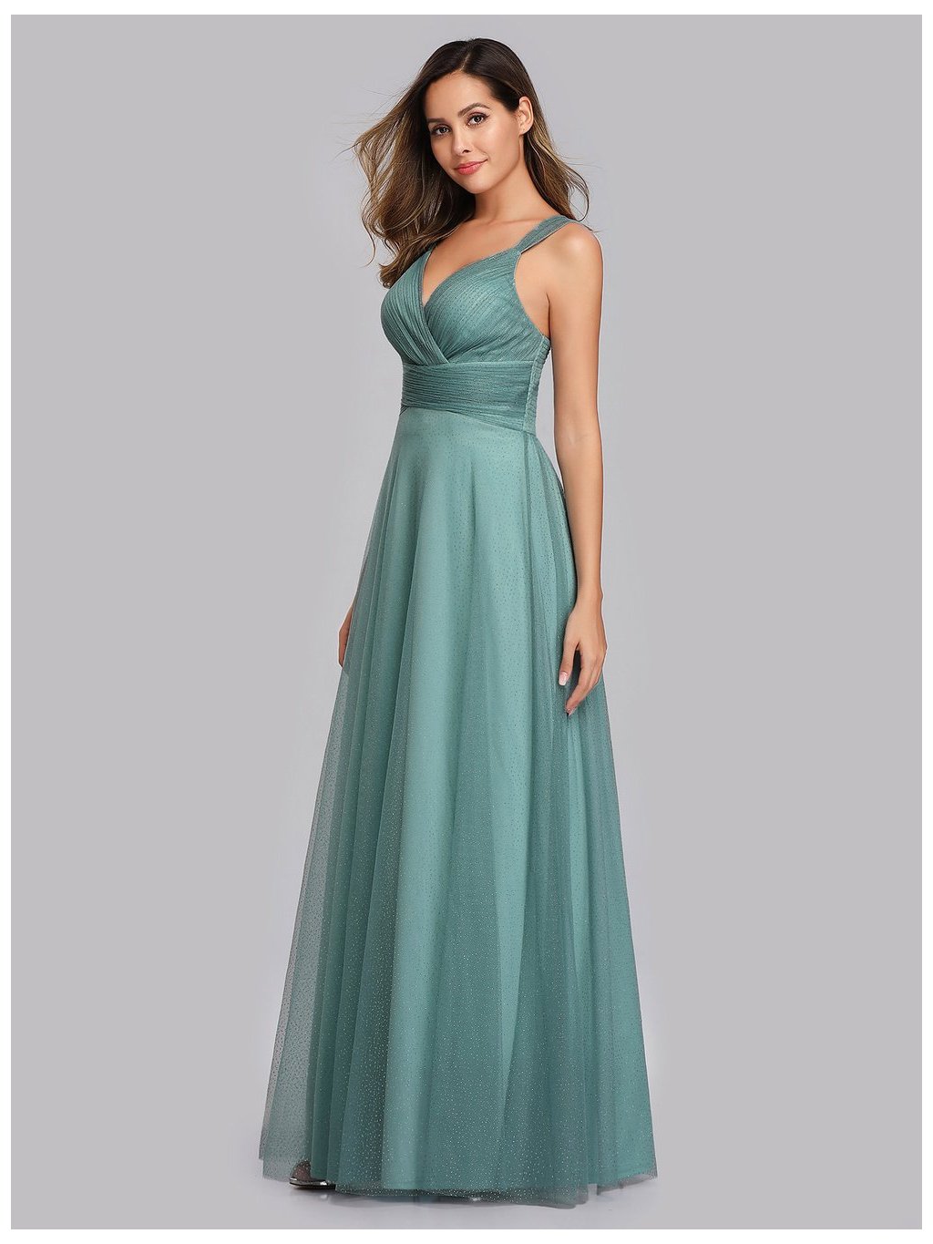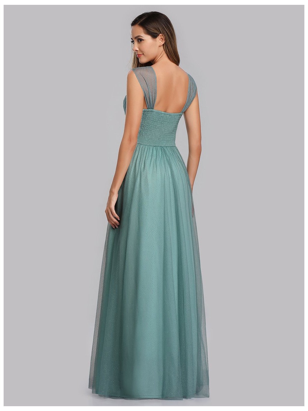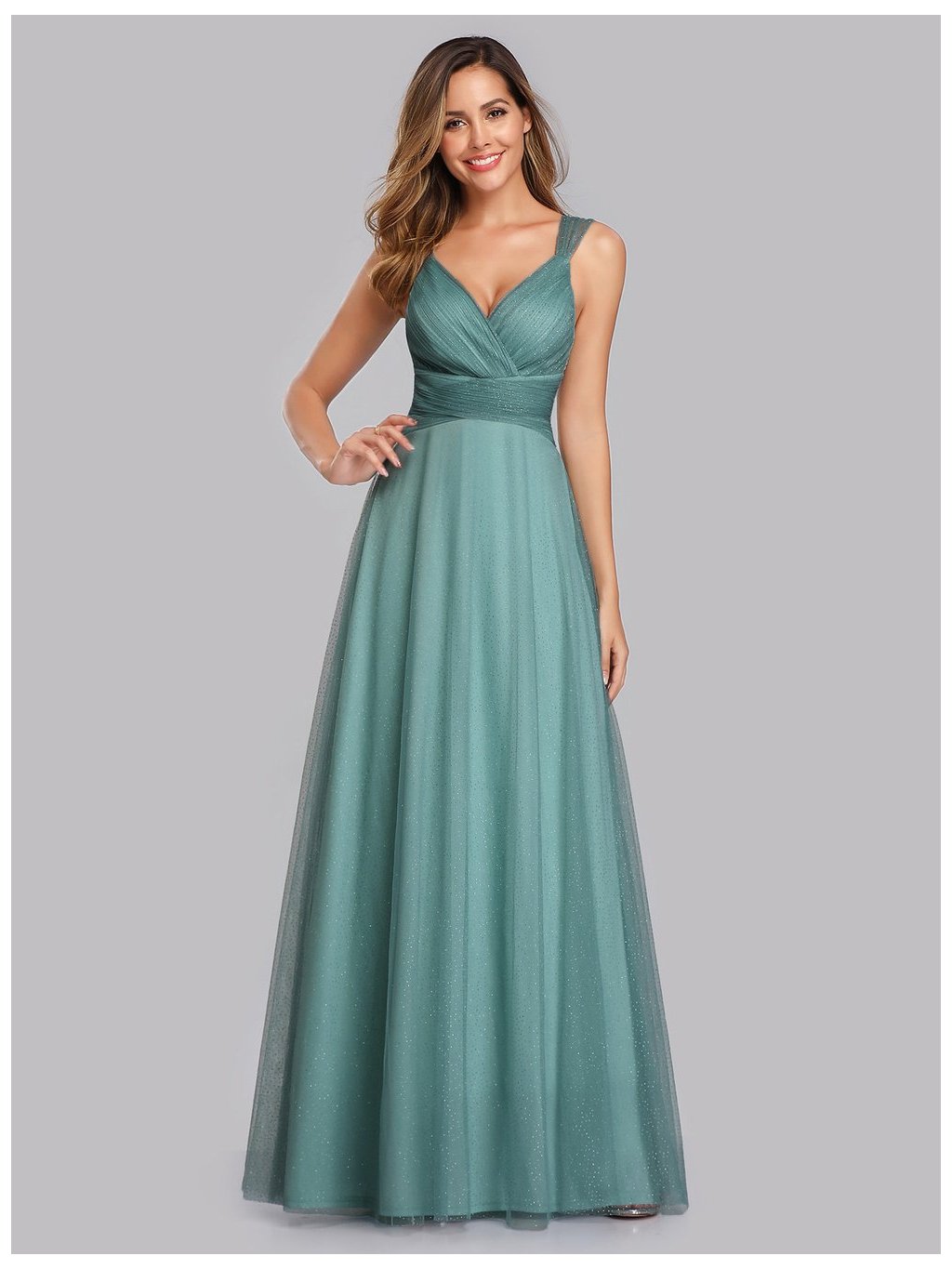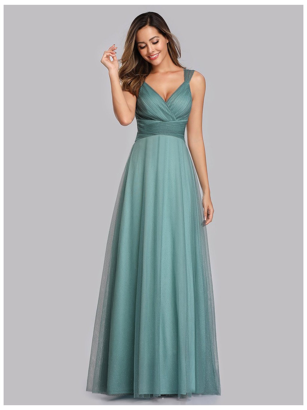 Luxusní modrozelené šaty Ever Pretty. Šaty mají široká ramínka.Mají velký výstřih. Na zádech mají žabičkové řasení, šaty tak drží tam kde mají.