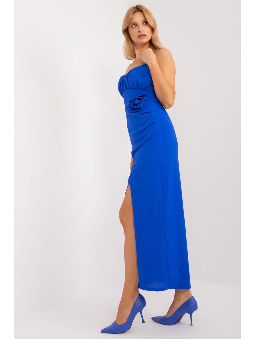 Tyto tužkové šaty jsou typickým příkladem letní elegance a sofistikovaného designu. Jsou ideální na elegantní vycházky i večírky a dodají šmrnc každé příležitosti. Neobvyklým detailem je látková ozdobná květina umístěná v úrovni pasu, která šatům dodává jemnost a romantiku. Navíc od stehen dolů se táhne ozdobný rozparek, který dodává šatům jemný smyslný nádech, zdůrazňuje ženskou siluetu a dodává jim lehkost. Šaty jsou vyrobeny z hladkého polyesteru s viskózovou podšívkou a zajišťují pohodlné nošení. Jejich midi délka a tenká ramínka zajišťují, že kulatý výstřih je jemně odhalený a zdůrazňuje krk a ramena. Řasení na úrovni prsou a na zádech dodává šatům lehkost a charakter, díky čemuž silueta vypadá obzvlášť žensky a přitažlivě. Tyto šaty jsou ideální volbou pro ženy, které chtějí v létě vypadat úžasně a cítit se sebevědomě, když vyrážejí ven. Díky jejich eleganci a šiku snadno upoutáte pozornost a budete se cítit výjimečně. Řasení s gumičkami na zádech je pružné a usnadňuje oblékání šatů. Délka šatů je uvedena s ramínky a bez nich.