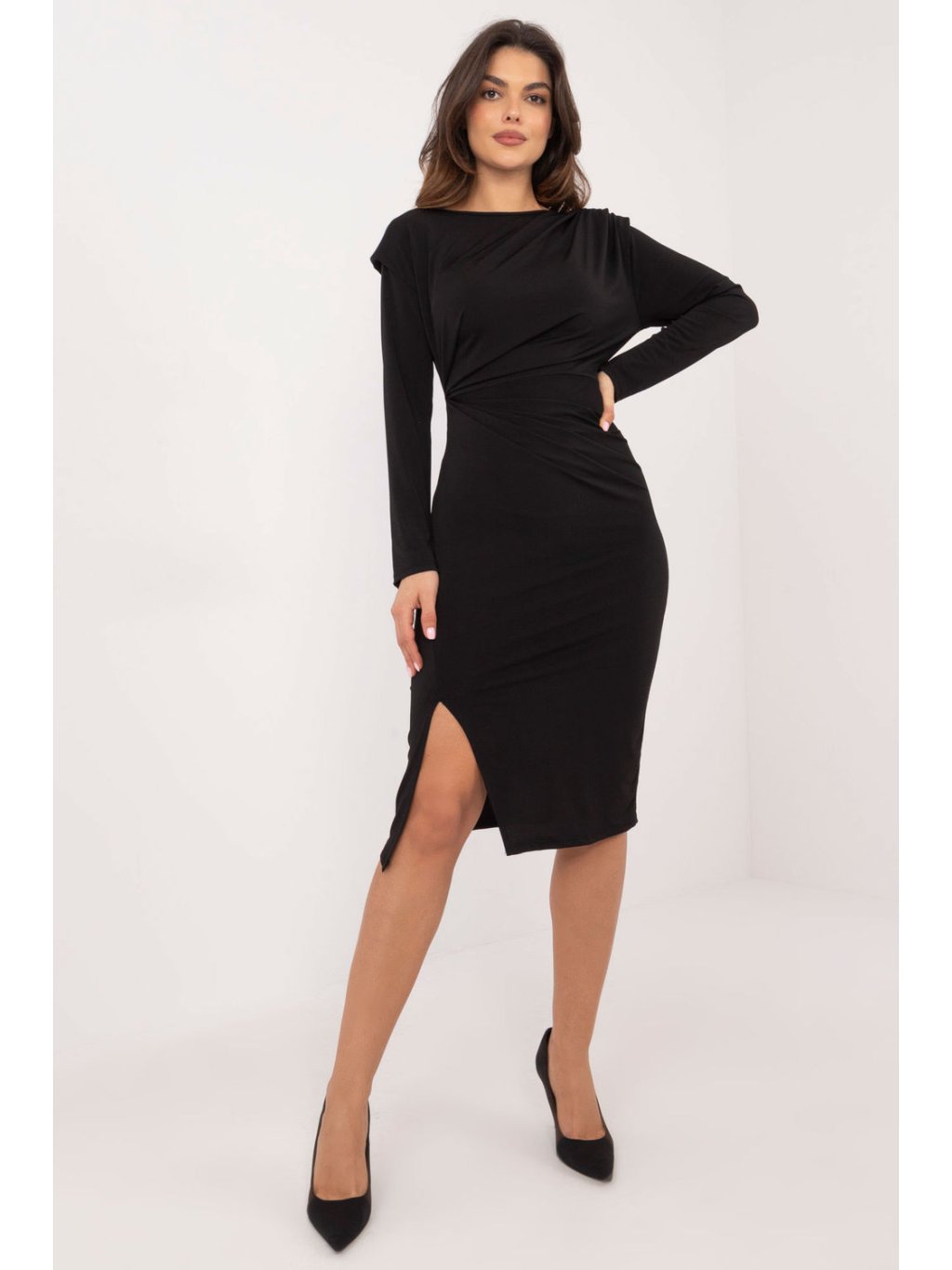 Tento šaty jsou kombinací klasiky a modernosti. Přiléhavý střih tužkové sukne zdůrazňuje postavu a midi délka dodává eleganci. Hladký materiál z polyesteru a elastanu zajistí pohodlí a skvělé padnutí. Ramenní polštářky dodávají šatům výjimečný charakter a opticky zvětšují poprsí. Kulatý výstřih decentně zdůrazňuje krk a ozdobné drapování přidává pohybu a lehkosti. Šaty se skvěle hodí jak do kanceláře, tak na večerní výlet. Můžete je sladit s saka a podpatky na důležité jednání, nebo s jemnými šperky a psaníčkem na večírek. Tyto šaty jsou investicí do vašeho šatníku. Jejich univerzální střih a elegantní detaily vám zajistí sebevědomí a styl ve všech situacích. Jedná se o kousek, který by si měla najít místo v šatníku každá žena, která si cení klasiky a modernosti.