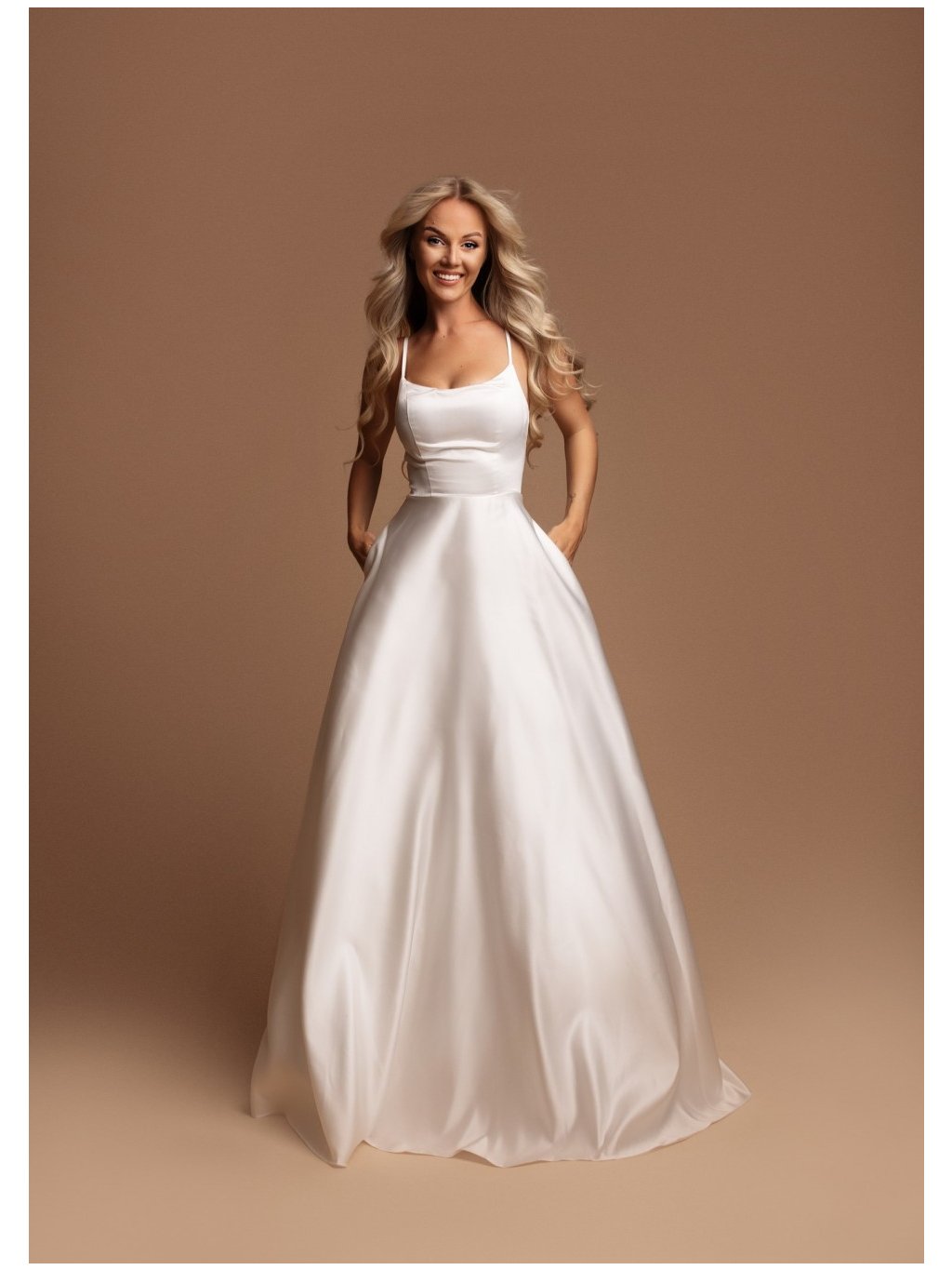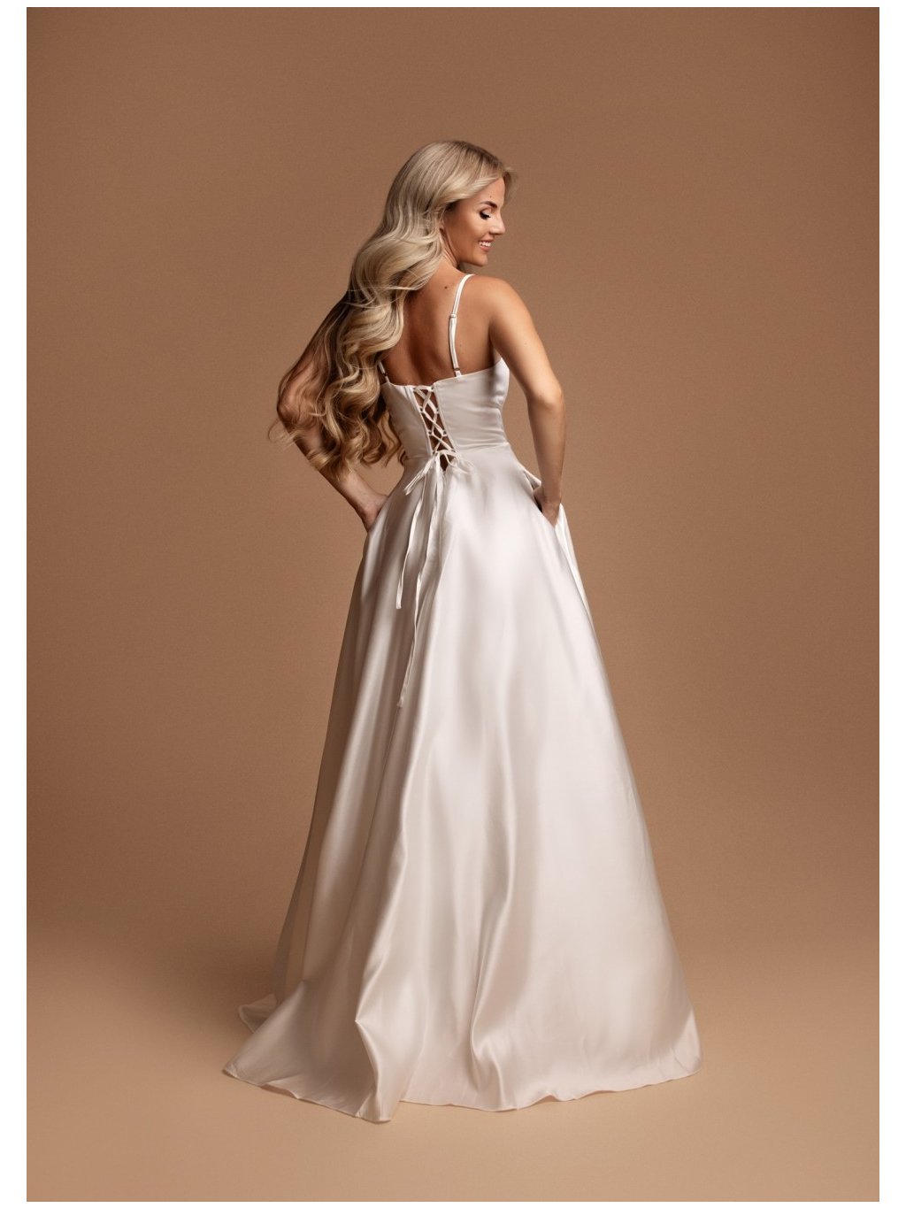 Stylové šaty společenské hladké,špagetová ramínka,vzadu na šněrování , s kapsami. Krásně sedí, díky šněrování se přizpůsobí Vaší postavě.