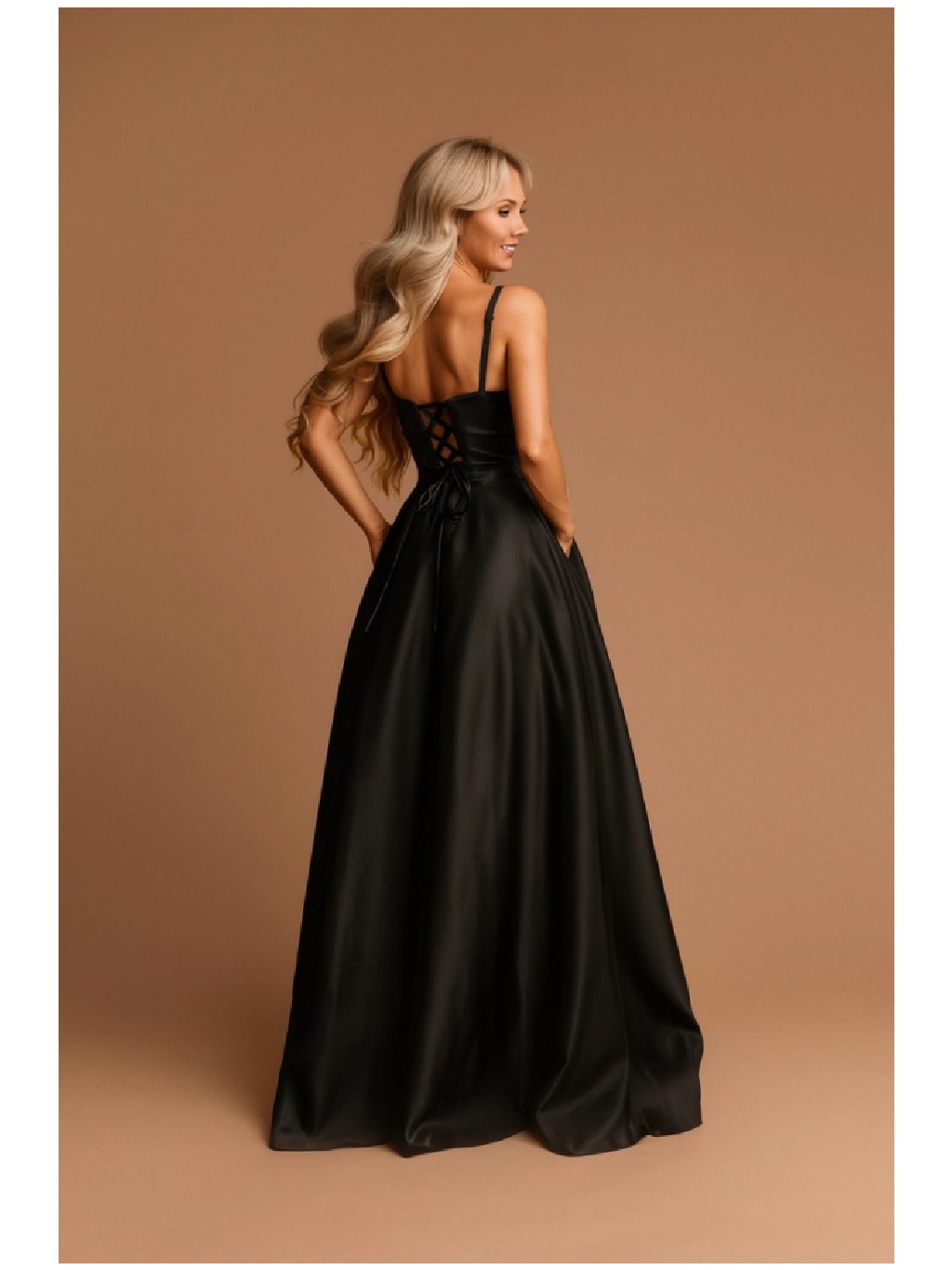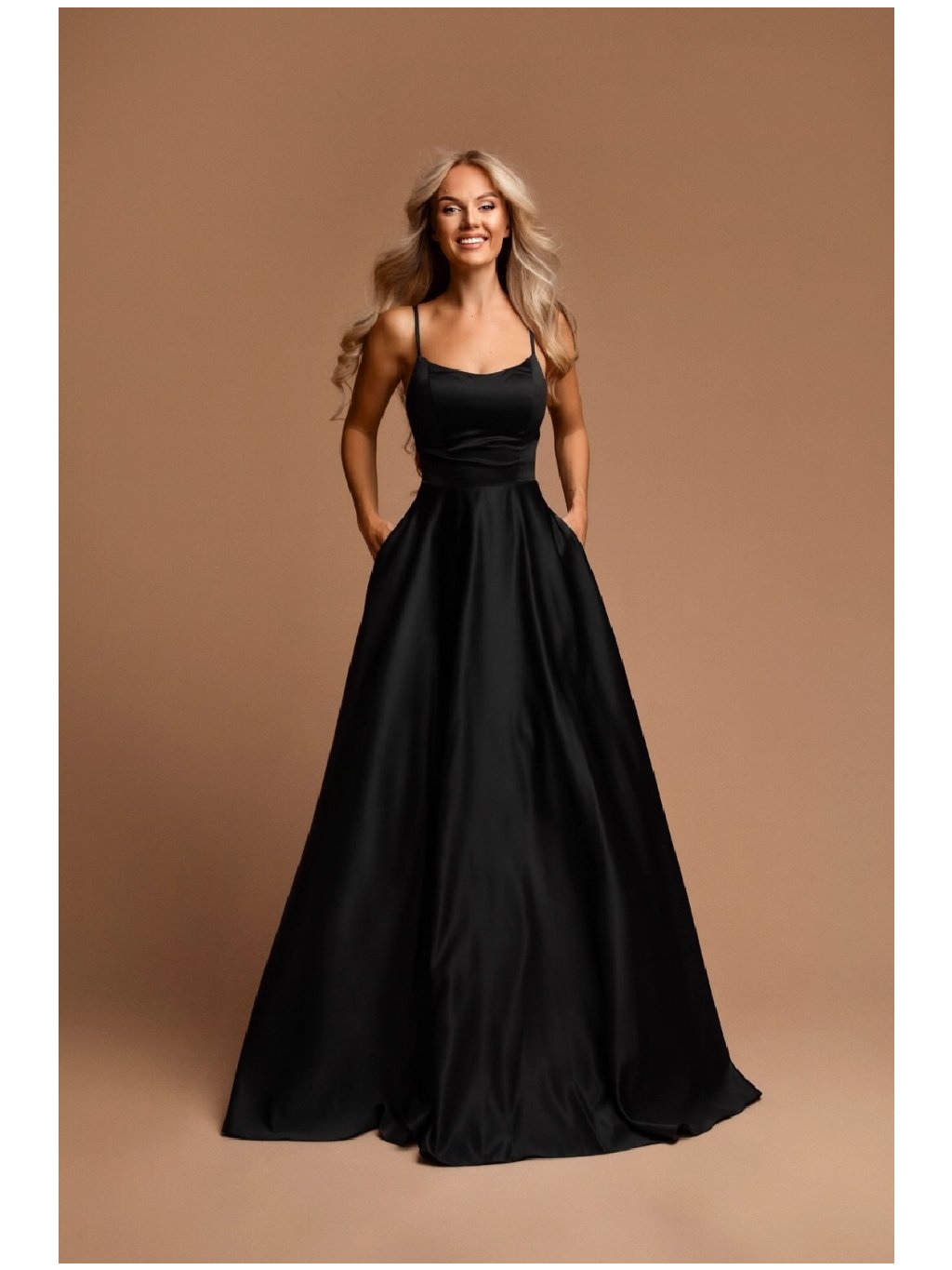 Stylové šaty společenské hladké,špagetová ramínka (ramínka lze oddělat),vzadu na šněrování , s kapsami