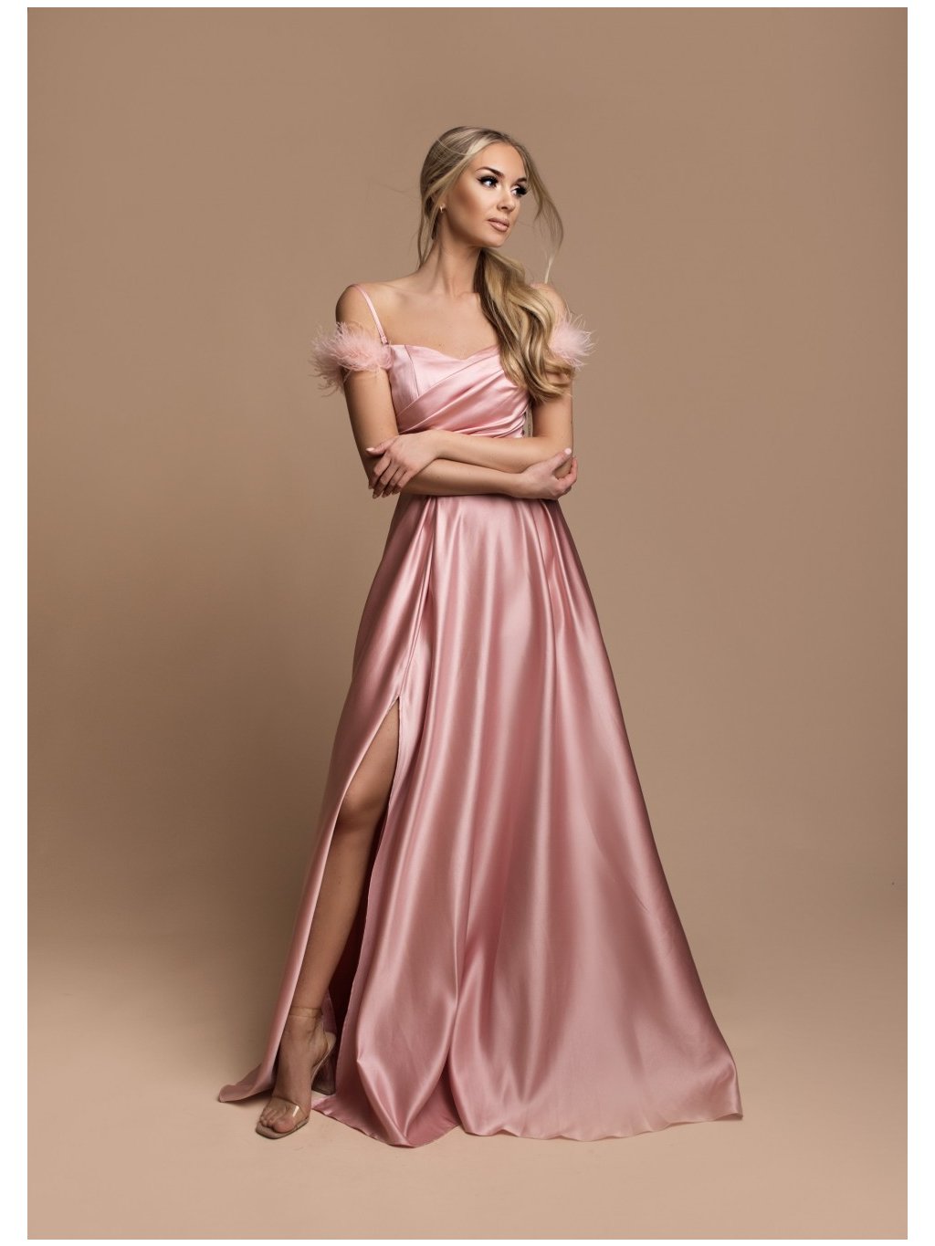 Stylové šaty společenské hladké,špagetová ramínka (ramínka lze oddělat), na rukou jsou peříčka
