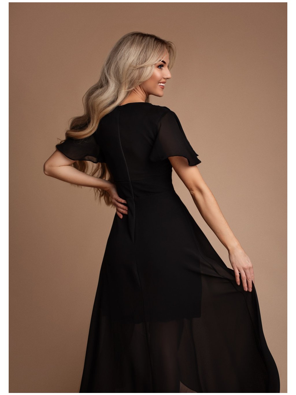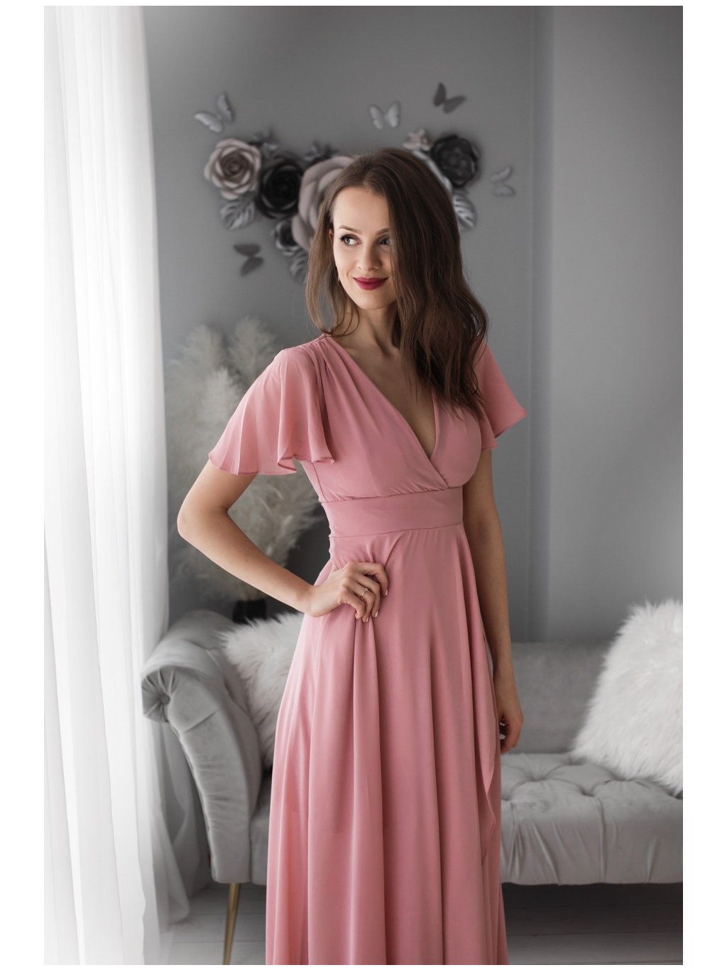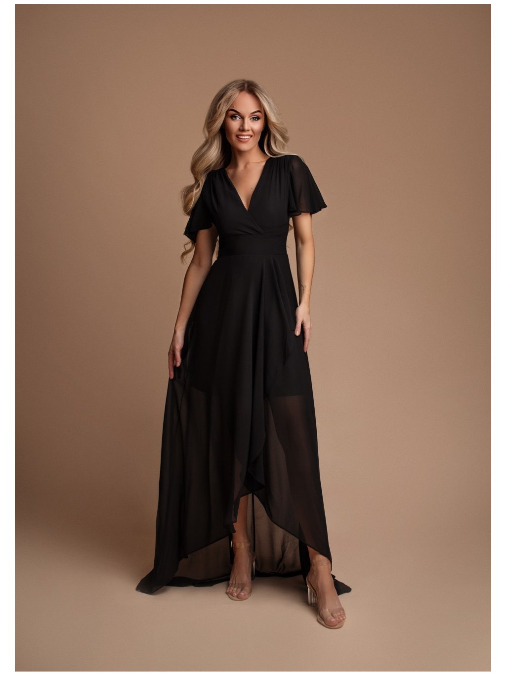 Stylové šaty společenské dlouhé s krátkým předkem a krátkým rukávem ,velkým výstřihem,