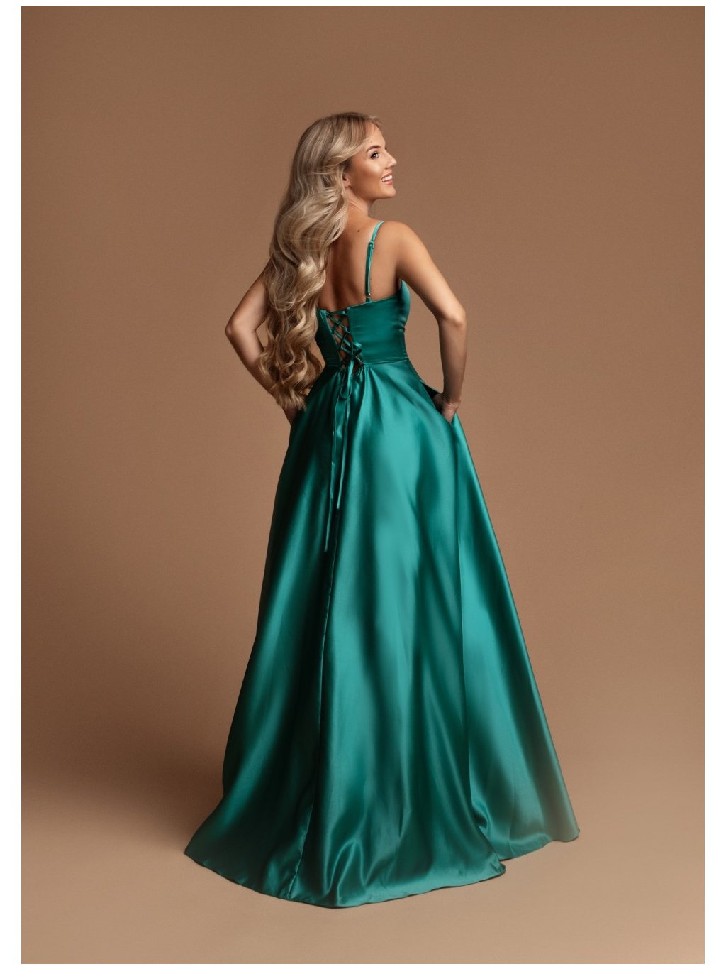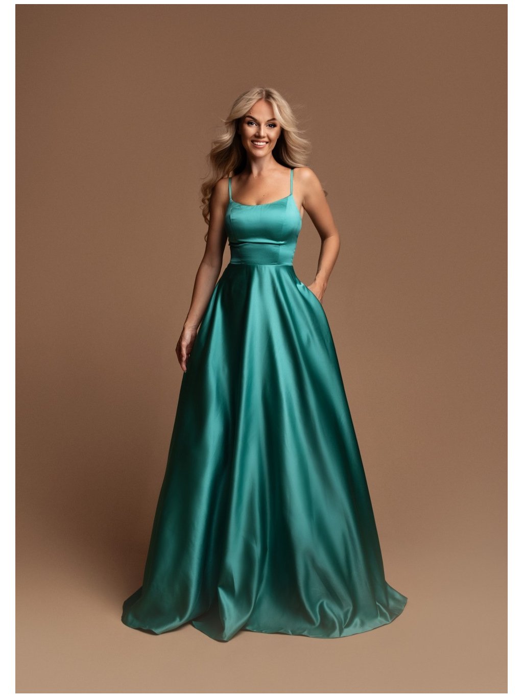 Společenské šaty tyrkysové saténové s kapsami 2455