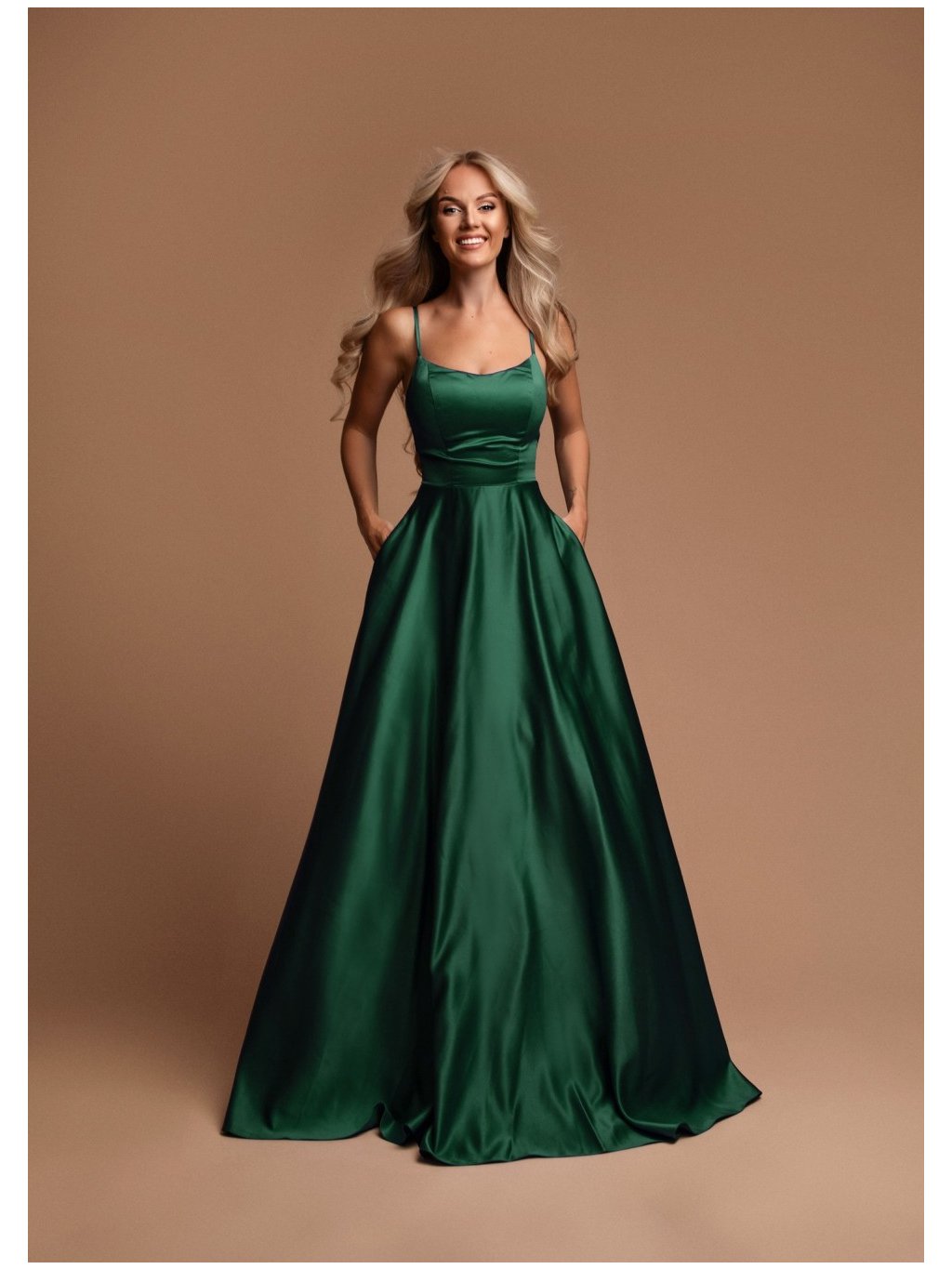 Stylové šaty společenské hladké,špagetová ramínka (ramínka lze oddělat),vzadu na šněrování , s kapsami