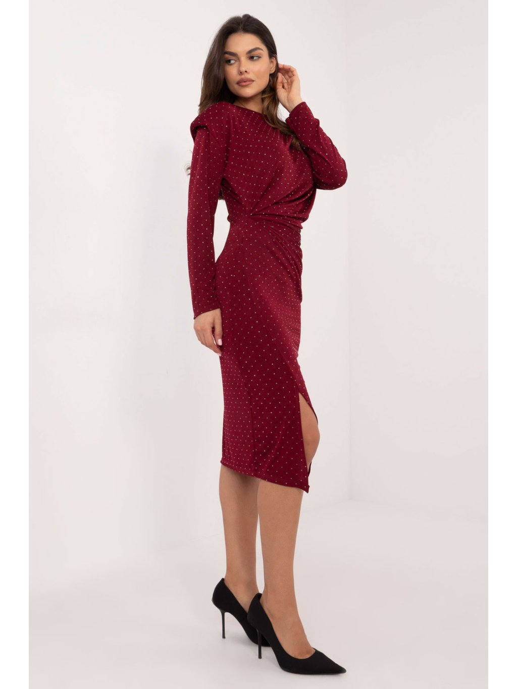 Tato jedinečná šaty jsou ideální volbou na každou speciální příležitost. Tvarovaný střih zdůrazňuje postavu a délka midi přidává eleganci. Kulatý výstřih a dlouhé rukávy vytvářejí elegantní vzhled. Šaty jsou vyrobeny z příjemného materiálu, který se skvěle nosí. Třpytky po celé ploše přidávají lesk a dělají z šatů velmi efektní kousek. Bez zapínání zajistí pohodlné nošení. Tyto šaty jsou must-have pro každou ženu, která chce pocítit se výjimečně. Jejich elegantní design a vysoká kvalita provedení vás udělají hvězdou každého večírku.