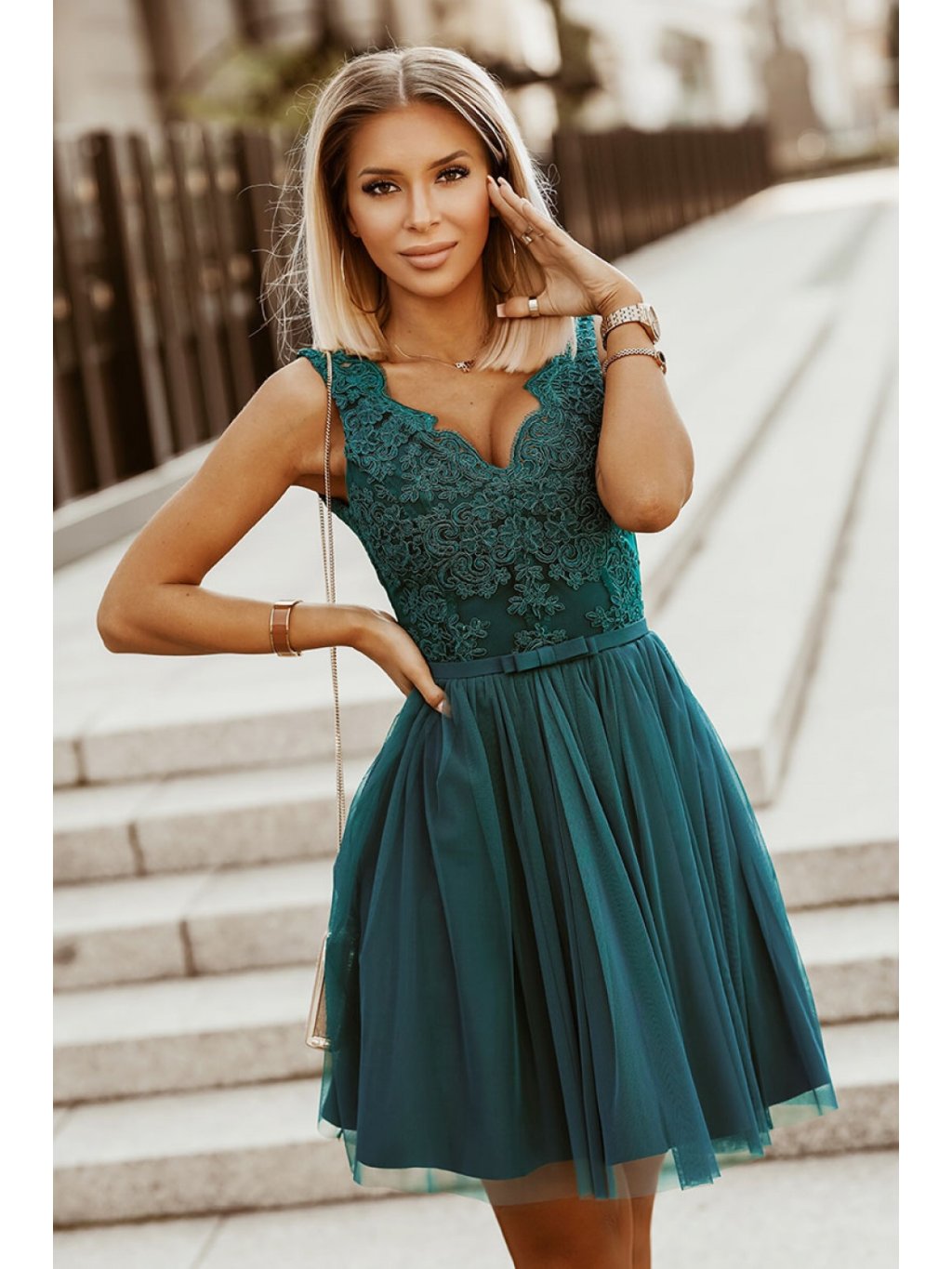 Večerní šaty zelené krátké s krajkou 159979 Bicotone