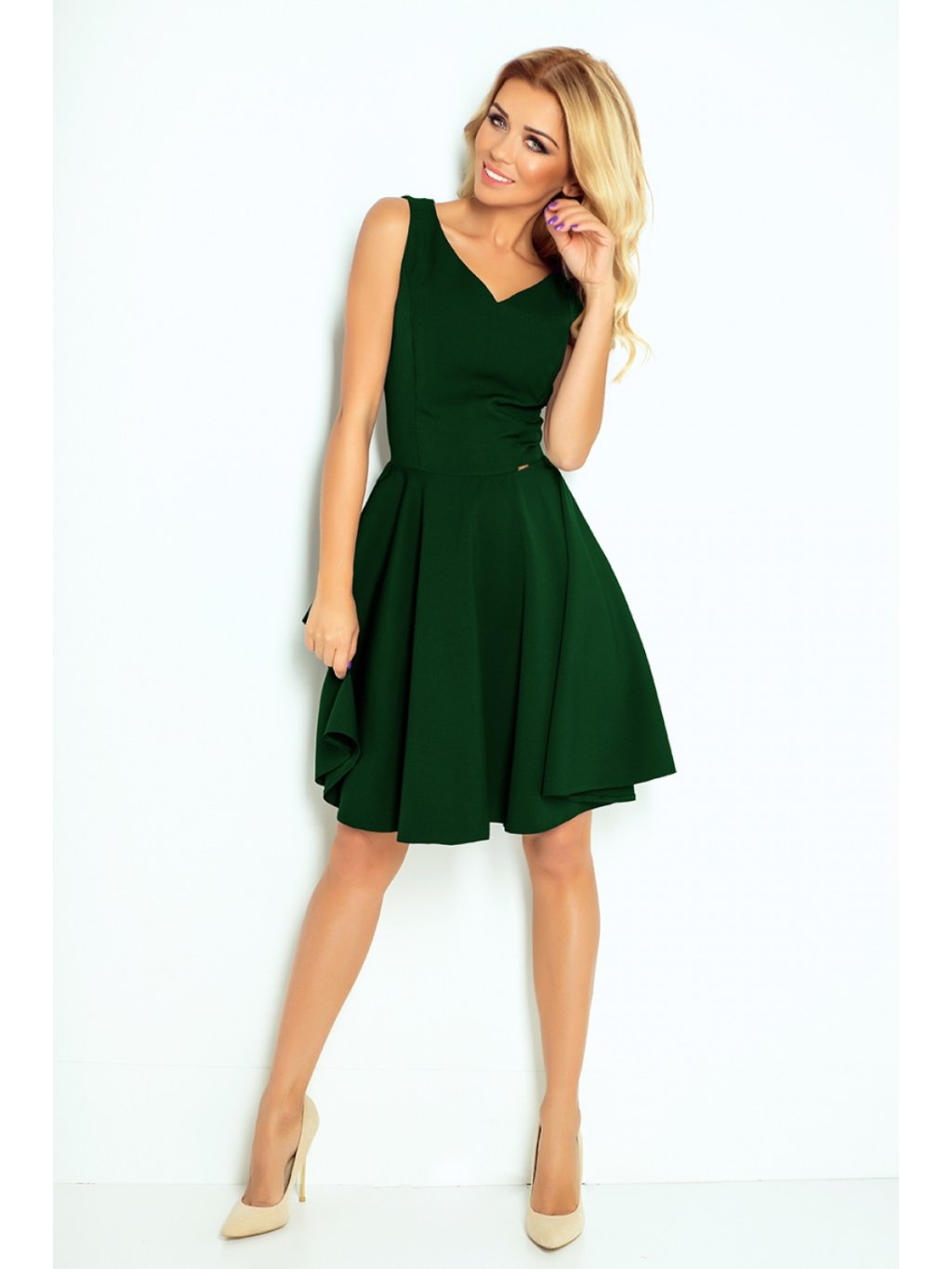 Rozšířené šaty s výstřihem ve tvaru srdce v lahvově zelené barvě. Vysoce kvalitní tkanina s příjemným omakem. Značka numoco.