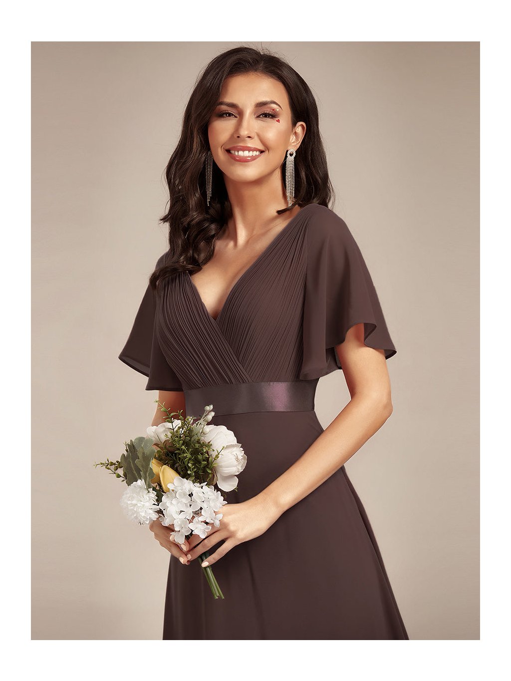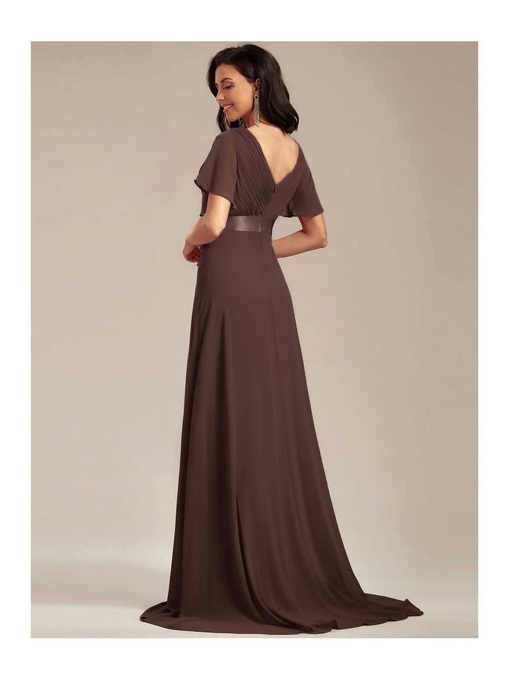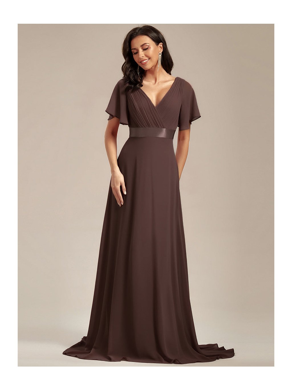 Čokoládové šaty plesové s rukávy 9890