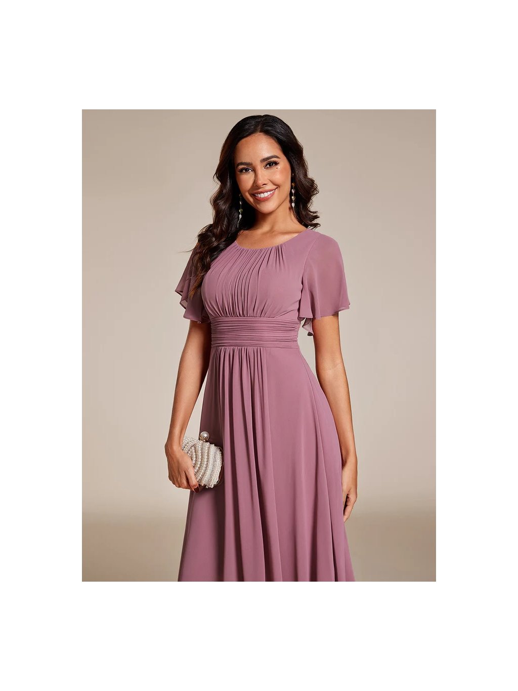 Jednoduché společenské šaty pod kolena na svatbu i večírek. Volné rukávy , kulatý vystřih, krásné jemné řasení. šaty se zapínám vzadu na zip.