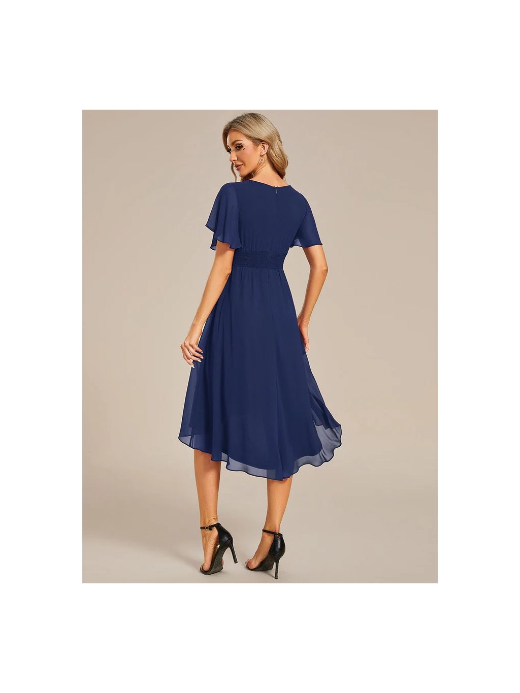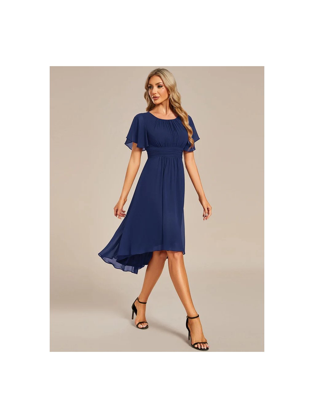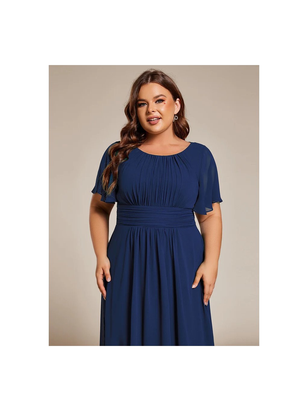 Jednoduché společenské šaty pod kolena na svatbu i večírek. Volné rukávy , kulatý vystřih, krásné jemné řasení. šaty se zapínám vzadu na zip.