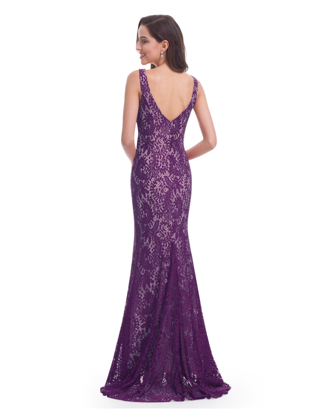 Elegantní krajkové Ever Pretty šaty fialové 8859