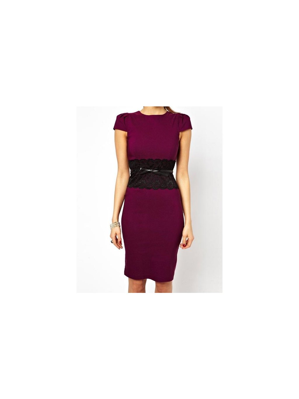 A Elegantní pouzdrové šaty s krajkou fialkové OH036