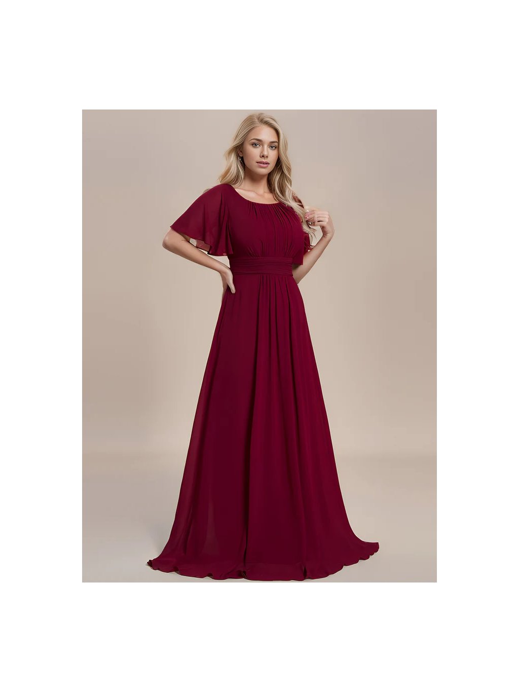 Jednoduché společenské dlouhé šaty na svatbu i večírek. Volné rukávy , kulatý vystřih, krásné jemné řasení. šaty se zapínám vzadu na zip.